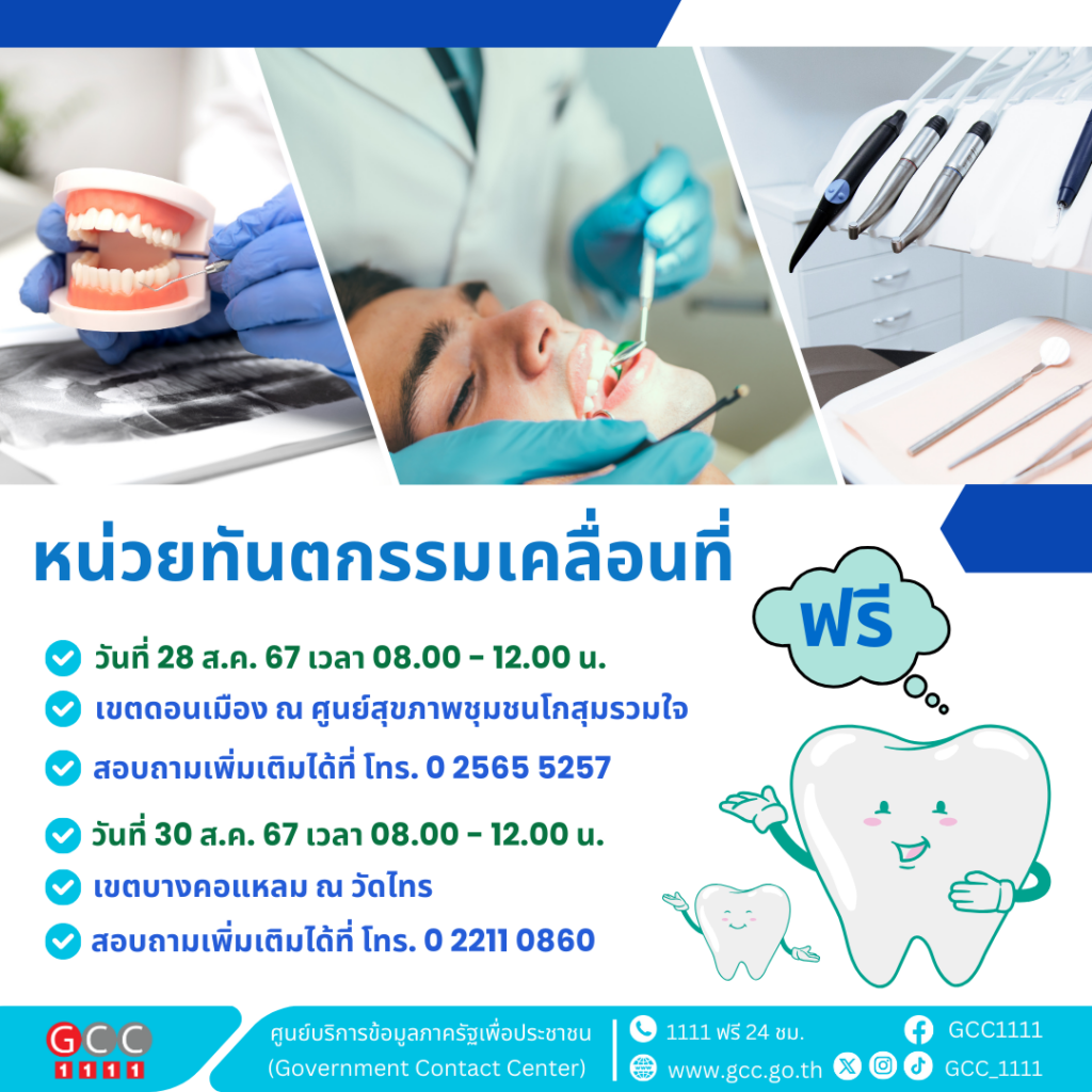 สำนักอนามัย กรุงเทพมหานคร จัดหน่วยทันตกรรมเคลื่อนที่ ฟรี วันที่ 28 และ 30 ส.ค. 67