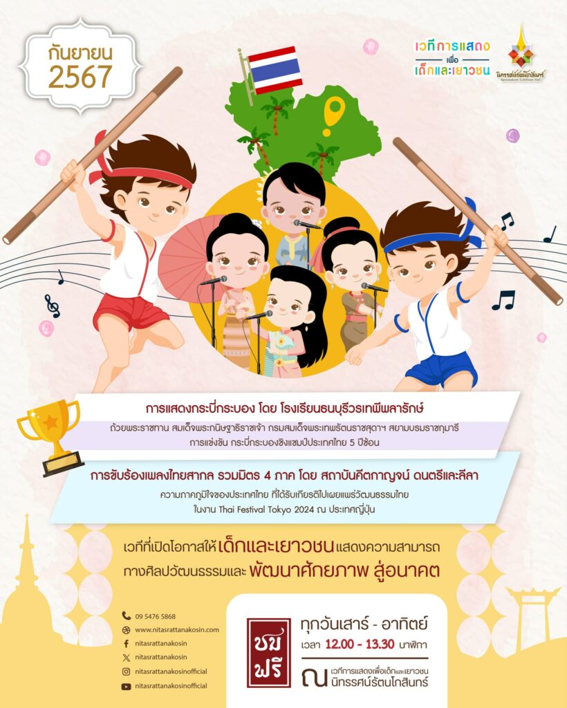 นิทรรศน์รัตนโกสินทร์ จัดเวทีการแสดงเพื่อเด็กและเยาวชน ประจำเดือนกันยายน 2567