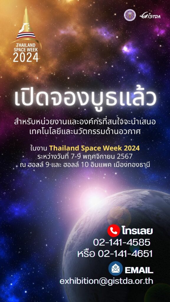 GISTDA เปิดจองบูธ ในงาน Thailand Space Week 2024 ระหว่างวันที่ 7-9 พฤศจิกายน 2567