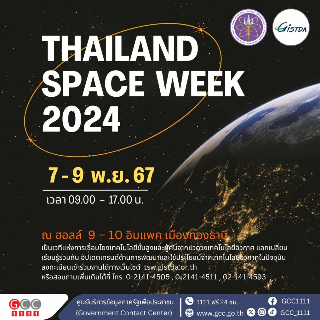 GISTDA ขอเชิญร่วมงาน Thailand Space Week 2024 ระหว่างวันที่ 7 – 9 พฤศจิกายน 2567