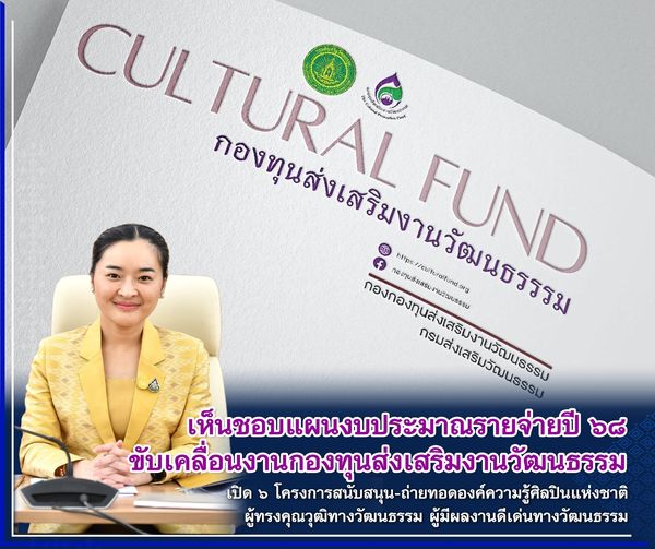 คณะกรรมการวัฒนธรรมแห่งชาติ เห็นชอบแผนงบประมาณรายจ่ายปี 68 ใช้ขับเคลื่อนงานกองทุนส่งเสริมงานวัฒนธรรม ชู 6 โครงการสนับสนุน เผยแพร่ภูมิปัญญาของศิลปินแห่งชาติ – ผู้ทรงคุณวุฒิทางวัฒนธรรม – ผู้มีผลงานดีเด่นทางวัฒนธรรม