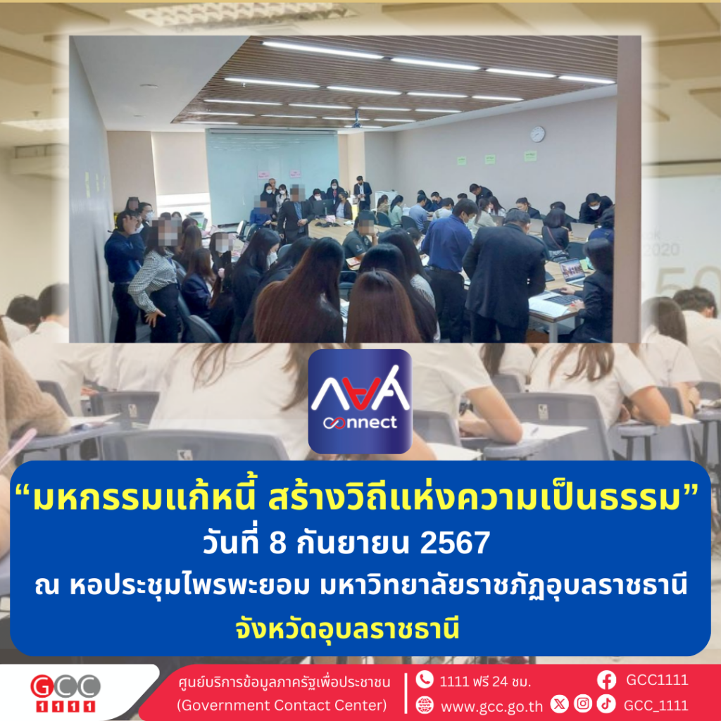 กยศ. ลงพื้นที่ร่วมกับกรมคุ้มครองสิทธิและเสรีภาพและกรมบังคับคดี ปรับโครงสร้างหนี้ผู้กู้ยืม ในงาน “มหกรรมแก้หนี้ สร้างวิถีแห่งความเป็นธรรม” ณ หอประชุมไพรพะยอม มหาวิทยาลัยราชภัฏอุบลราชธานี จังหวัดอุบลราชธานีวันที่ 8 กันยายน 2567