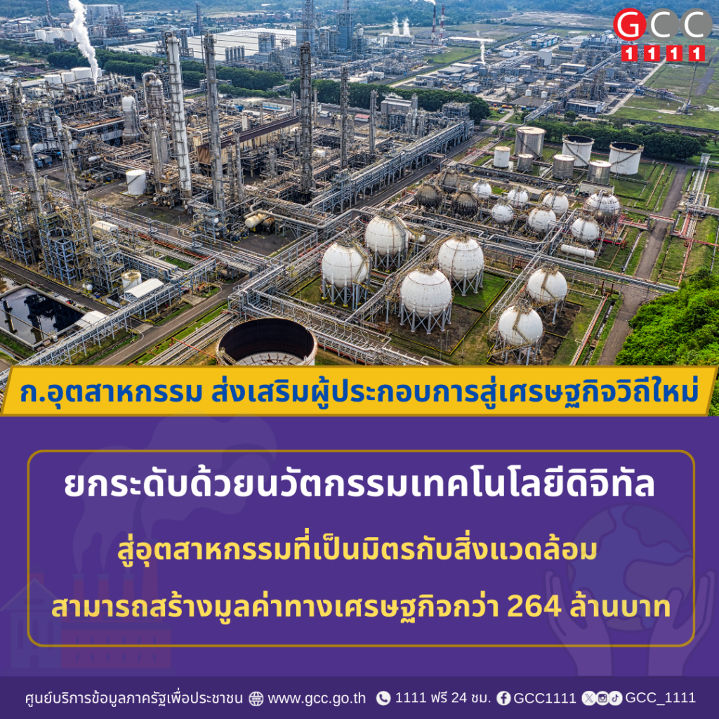 กระทรวงอุตสาหกรรม ส่งเสริมผู้ประกอบการสู่เศรษฐกิจวิถีใหม่ ยกระดับด้วยนวัตกรรม เทคโนโลยีดิจิทัล สู่อุตสาหกรรมที่เป็นมิตรกับสิ่งแวดล้อม สามารถสร้างมูลค่าทางเศรษฐกิจกว่า 264 ล้านบาท