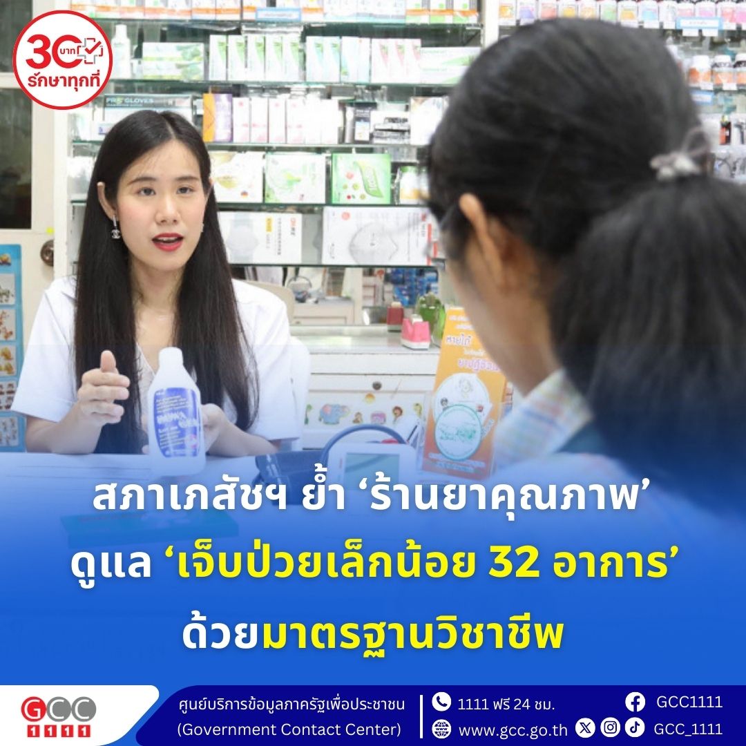 สภาเภสัชกรรม ย้ำ ร้านยาคุณภาพให้บริการดูแลเจ็บป่วยเล็กน้อย 32 อาการ ด้วยมาตรฐานวิชาชีพ ผ่านการรับรองจากสำนักรับรองร้านยาคุณภาพของสภาเภสัชกรรม ซึ่งจะมีเภสัชกรประจำร้านยาตลอดเวลาทำการ โดยเป็นเภสัชกรที่ได้ผ่านการอบรมการให้บริการดูแลประชาชนตามสิทธิประโยชน์ 32 กลุ่มอาการ และมีความรู้ความสามารถที่จะให้บริการอย่างเต็มที่ เพื่อให้ประชาชนที่มารับบริการได้คำแนะนำเพิ่มเติมในการดูแลสุขภาพตนเอง