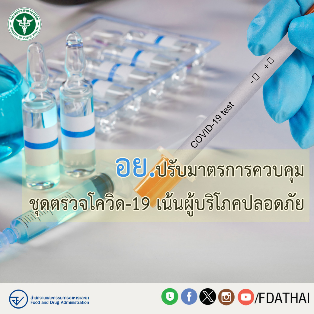 อย. ปรับมาตรการการควบคุมชุดตรวจและน้ำยาที่เกี่ยวข้องกับการวินิจฉัยการติดเชื้อโควิด 19 ให้สอดคล้องกับสถานการณ์และเป็นไปตามมาตรฐานสากล เพื่อลดระยะเวลาการพิจารณาอนุญาต และประชาชนยังได้ใช้เครื่องมือแพทย์ที่มีคุณภาพและปลอดภัย