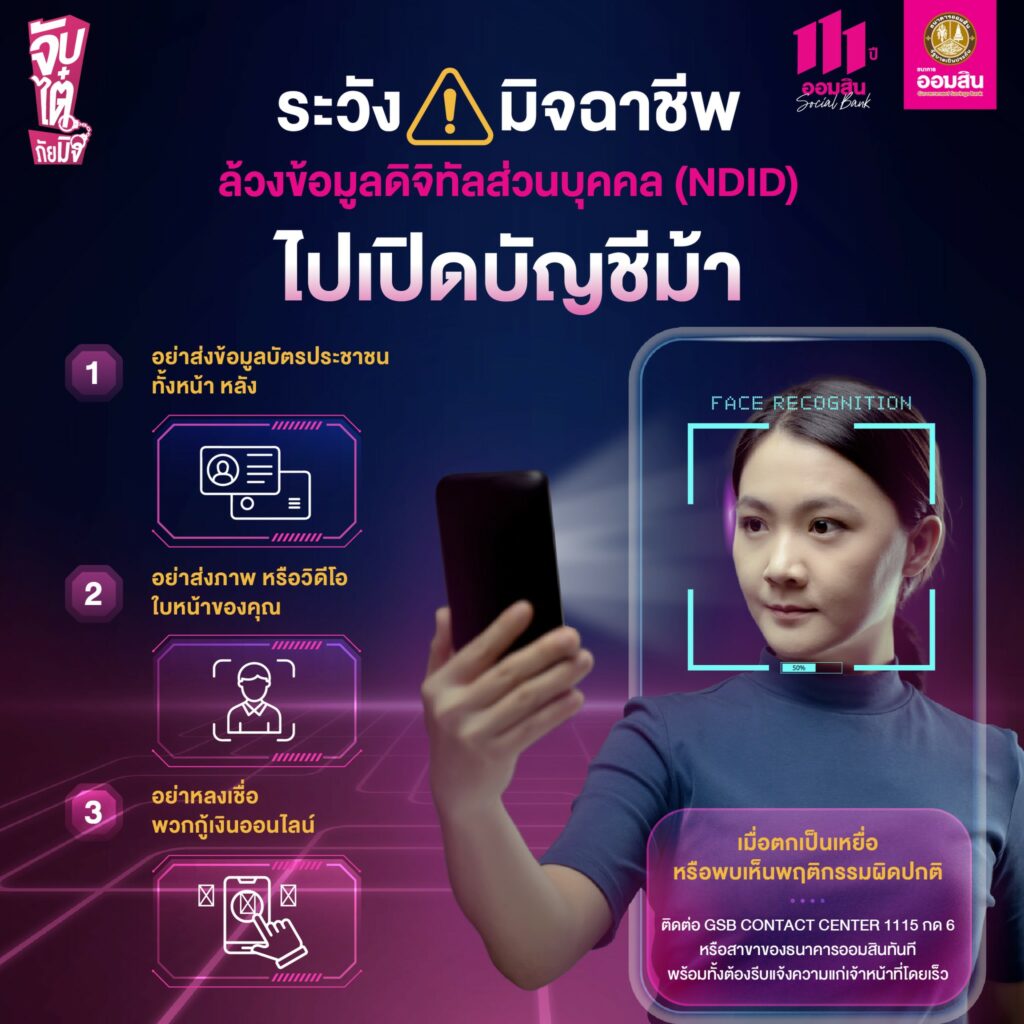 ธนาคารออมสิน เตือนระวังมิจฉาชีพล้วงข้อมูลดิจิทัลส่วนบุคคล (NDID) ไปเปิดบัญชีม้า