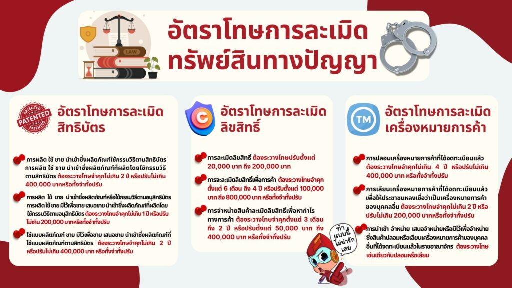 กรมทรัพย์สินทางปัญญา เปิดแผยอัตราโทษการละเมิดทรัพย์สินทางปัญญา ดังต่อไปนี้