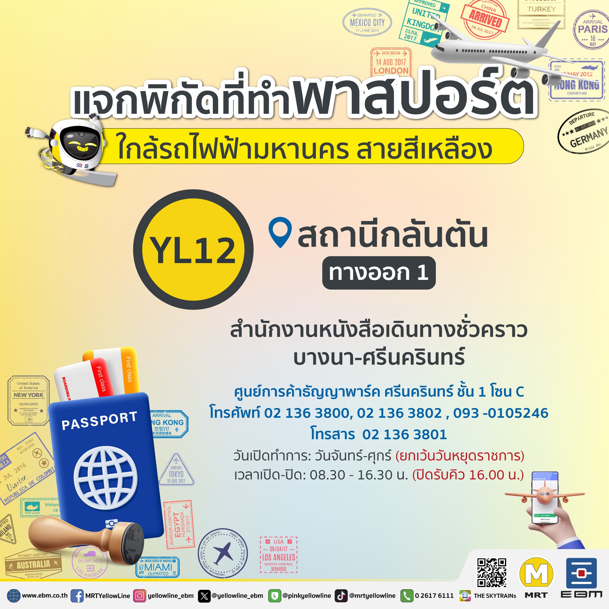 - รถไฟฟ้ามหานคร สายสีเหลือง แจ้งพิกัดสถานที่ทำพาสปอร์ตใกล้รถไฟฟ้ามหานคร สายสีเหลือง