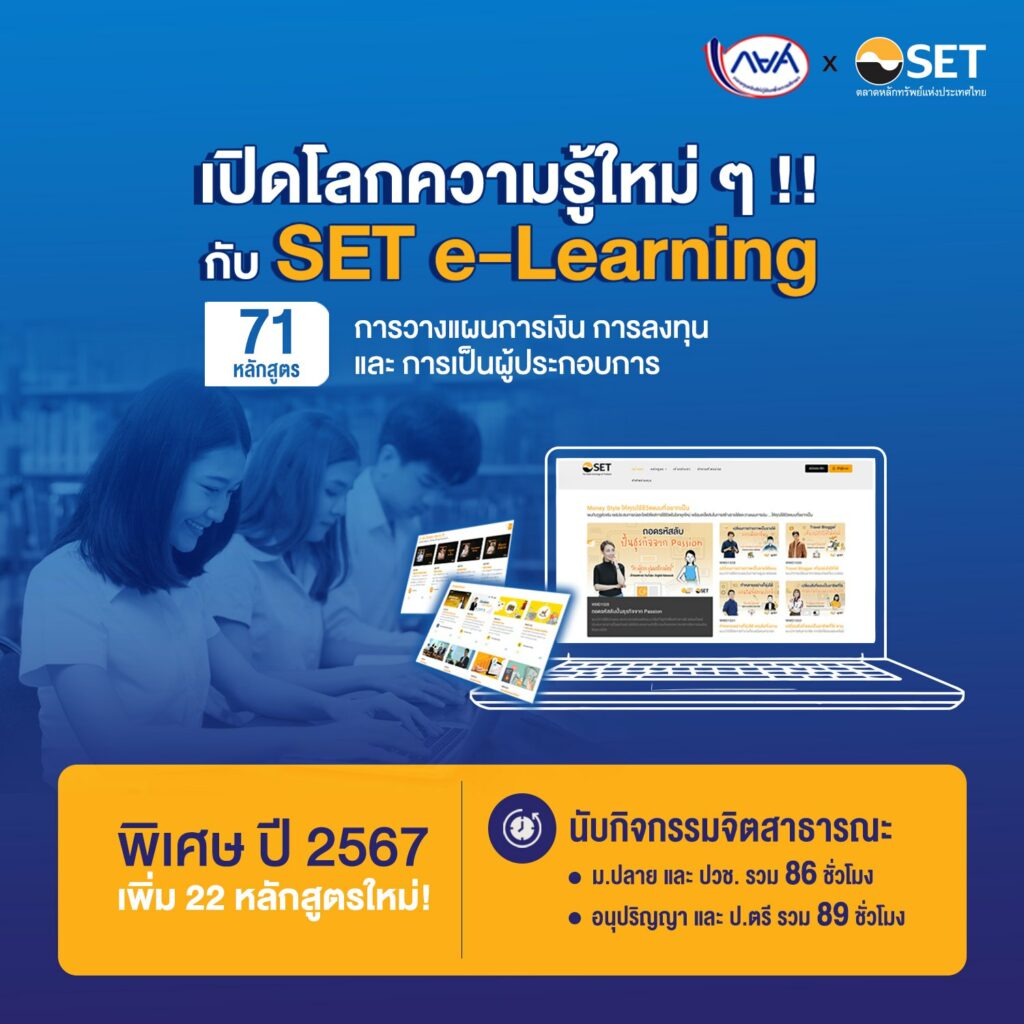 กองทุนเงินให้กู้ยืมเพื่อการศึกษา ร่วมกับตลาดหลักทรัพย์แห่งประเทศไทย จัดทำหลักสูตร SET e-Learning ให้ความรู้ทางการเงินแก่กลุ่มนักเรียน นักศึกษาผู้กู้ยืมที่อยู่ระหว่างการศึกษา โดยสามารถนำไปสะสมจำนวนชั่วโมงจิตสาธารณะให้ครบตามหลักเกณฑ์ที่กองทุนกำหนด