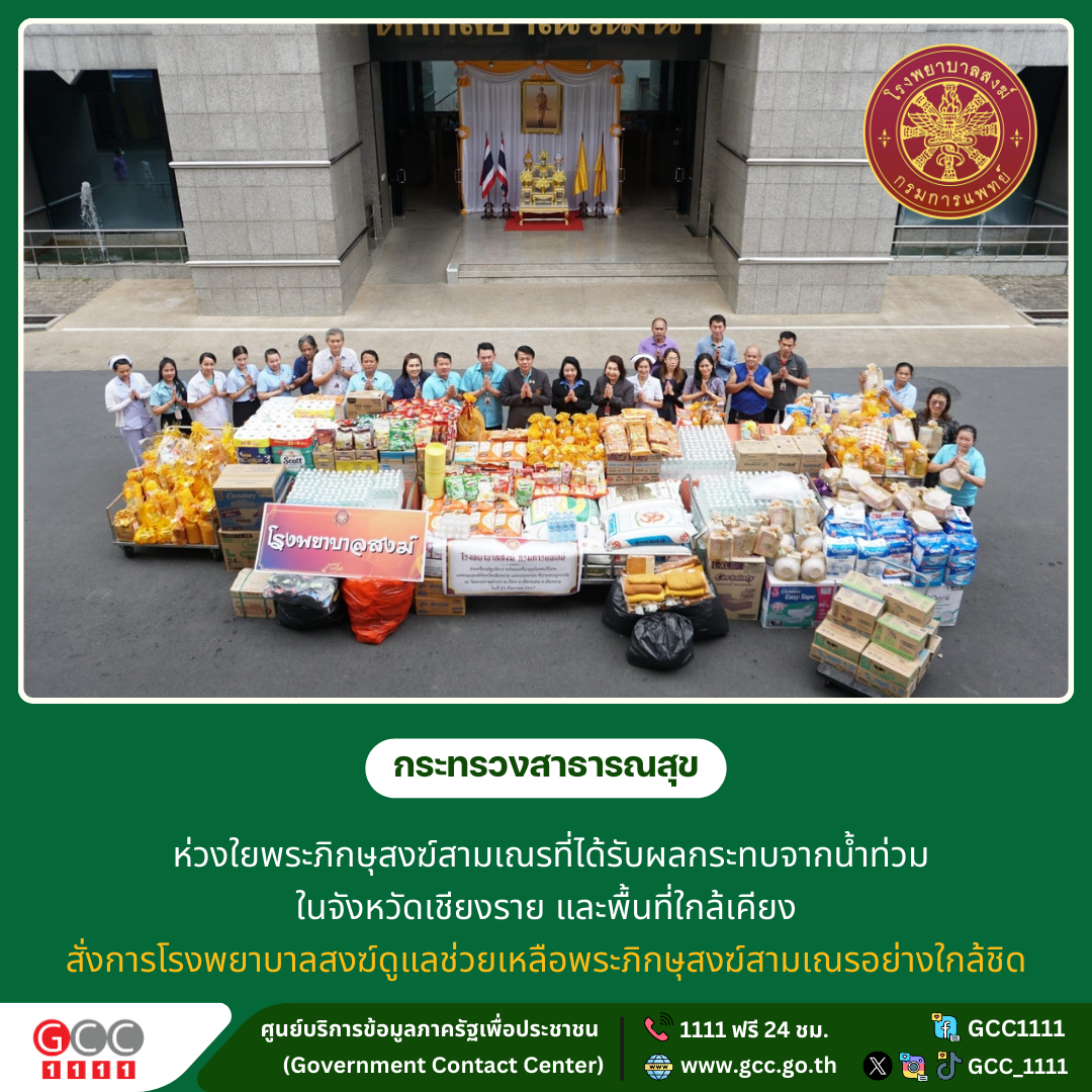 รมว.สธ.ห่วงใยพระภิกษุสงฆ์สามเณรกว่าพันรูปได้รับผลกระทบจากสถานการณ์น้ำท่วมในจ.เชียงรายและใกล้เคียง สั่งการโรงพยาบาลสงฆ์กรมการแพทย์ประสานพื้นที่ดูแลช่วยเหลือพระภิกษุสงฆ์สามเณรใกล้ชิด