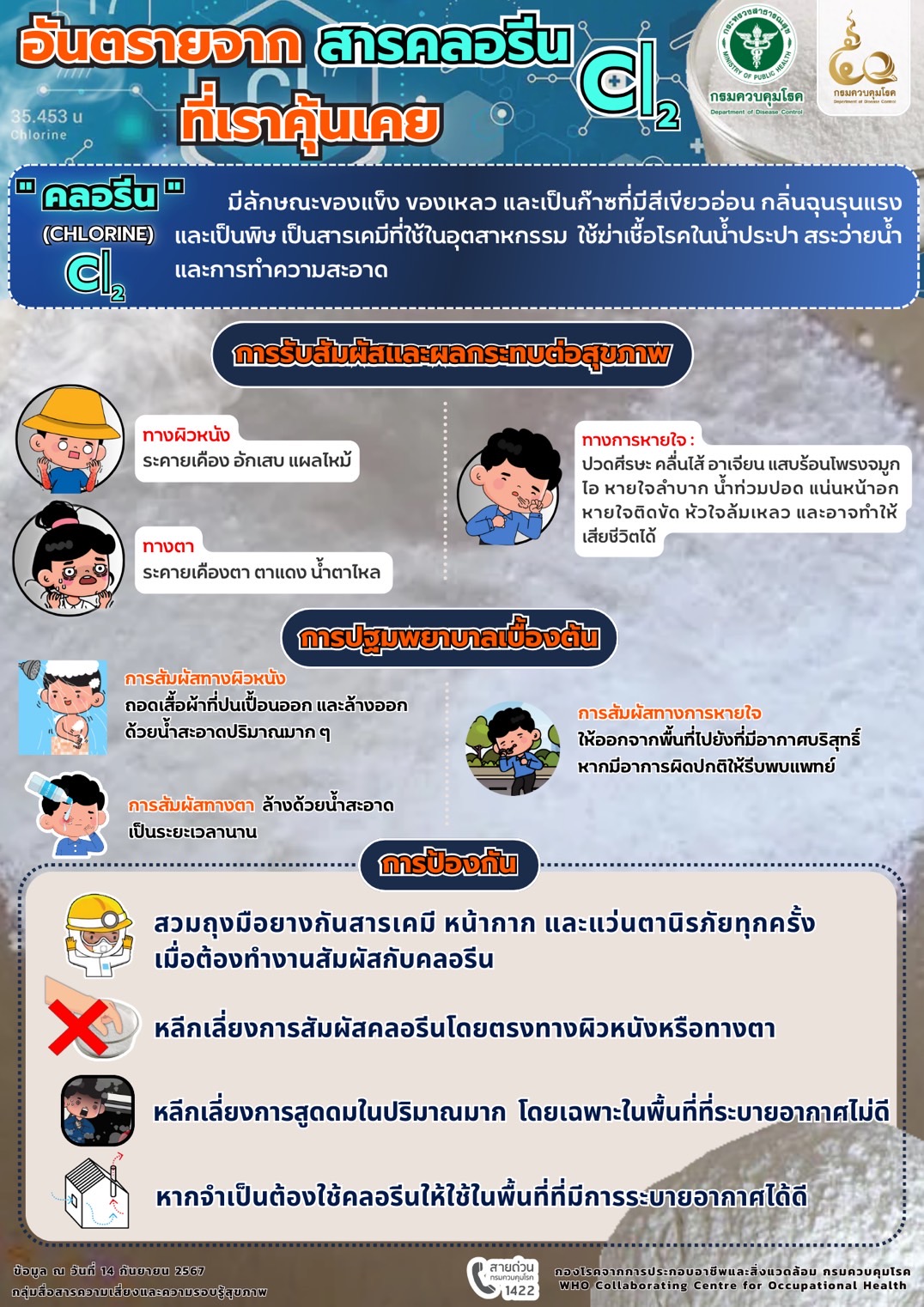 กรมควบคุมโรค แนะนำความรู้ อันตรายจากคลอรีนที่เราคุ้นเคย