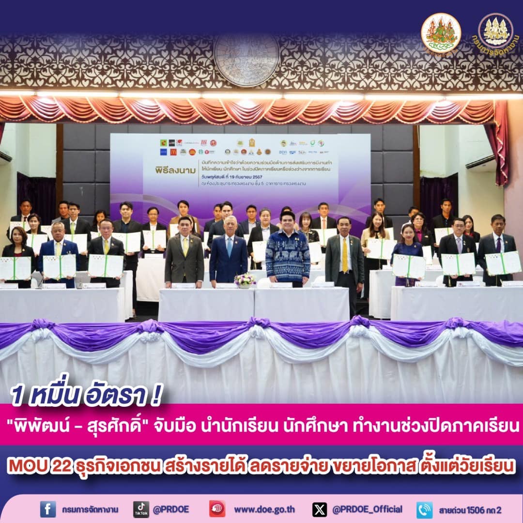 1 หมื่น อัตรา พิพัฒน์ – สุรศักดิ์ จับมือ นำ นักเรียน นักศึกษา ทำงานช่วงปิดภาคเรียน MOU 22 ธุรกิจเอกชน สร้างรายได้ ลดรายจ่าย ขยายโอกาส ตั้งแต่วัยเรียน