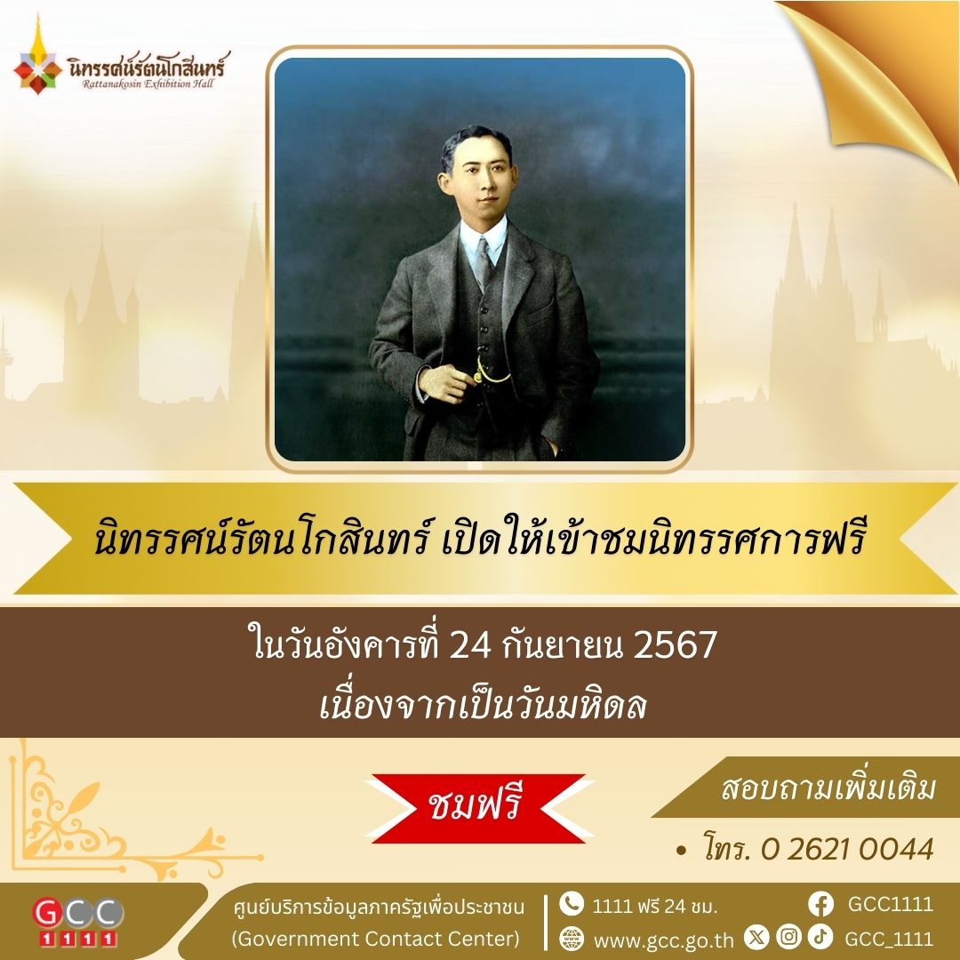 - นิทรรศน์รัตนโกสินทร์ เปิดให้เข้าชมนิทรรศการฟรี ในวันอังคารที่ 24 กันยายน 2567 เนื่องจากเป็นวันมหิดล เป็นวันระลึกถึงสมเด็จพระมหิตลาธิเบศร อดุลยเดชวิกรม พระบรมราชชนก