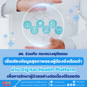 กระทรวงสาธารณสุขและกระทรวงยุติธรรม เชื่อมโยงข้อมูลบริการด้านสาธารณสุขบน Digital Health Platform เพื่อการเข้าถึงระบบบริการสาธารณสุข ข้อมูลสุขภาพ ประวัติการรักษา ของผู้ต้องขังในเรือนจำอย่างทั่วถึง และบุคลากรสุขภาพของทั้งสองหน่วยงานสามารถให้การรักษาผู้ป่วยได้อย่างต่อเนื่องไร้รอยต่อ