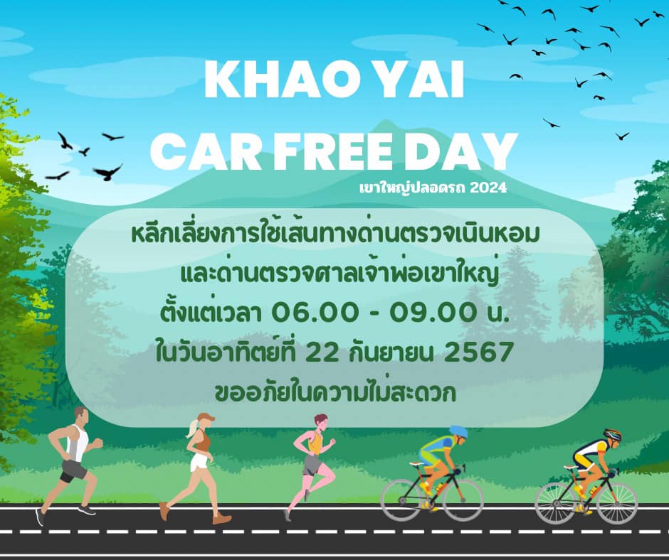 อุทยานแห่งชาติเขาใหญ่ แจ้งหลีกเลี่ยงการใช้เส้นทางขึ้นอุทยานแห่งชาติเขาใหญ่ 2 เส้นทาง ด่านตรวจศาลเจ้าพ่อเขาใหญ่ (ปากช่อง นครราชสีมา) และด่านเนินหอม (ปราจีนบุรี) ตั้งแต่เวลา 06.00 น. – 09.00 น. ในวันอาทิตย์ที่ 22 กันยายน 2567 เนื่องจากมีการจัดกิจกรรม เดิน วิ่ง ปั่น “เขาใหญ่ คาร์ ฟรี เดย์ 2024” ขึ้นอุทยานแบบปลอดรถยนต์ สามารถติดตามและสอบถามข้อมูลเพิ่มเติมได้ที่ Page : สมาคมการท่องเที่ยวเขาใหญ่ https://www.facebook.com/KYTA6465