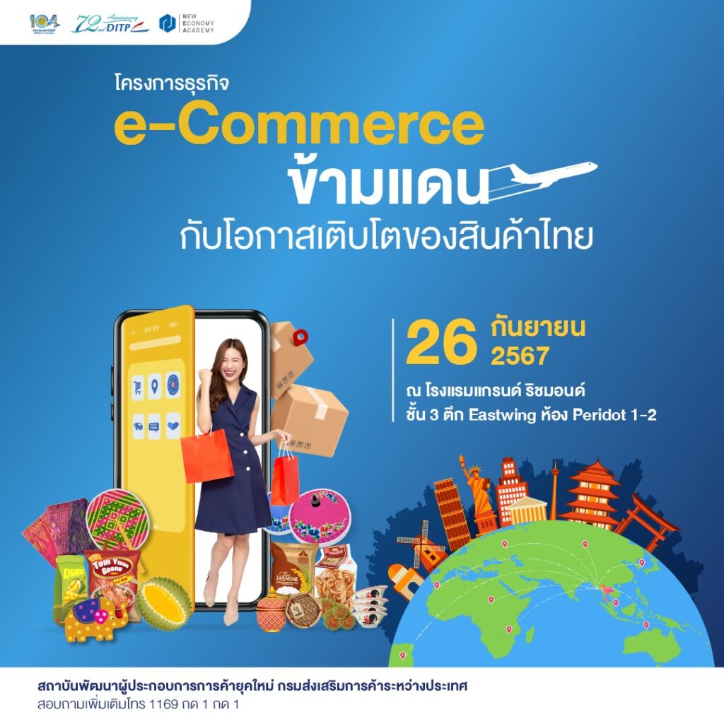 DITP เชิญร่วมโครงการ “ธุรกิจอีคอมเมิร์ซข้ามแดนกับโอกาสเติบโตของสินค้าไทย” วันที่ 26 กันยายน 2567
