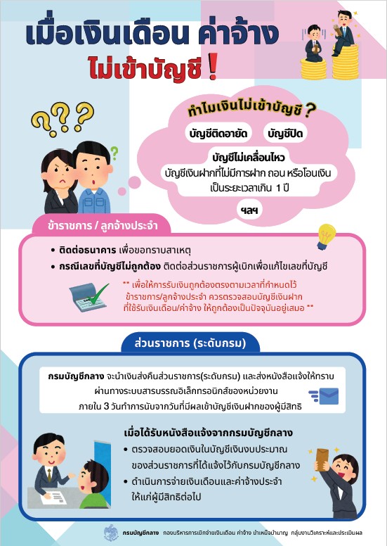 กรมบัญชีกลาง แจ้งเตือนเมื่อเงินเดือน ค่าจ้าง หรือบำเหน็จบำนาญ ไม่เข้าบัญชีต้องทำอย่างไร