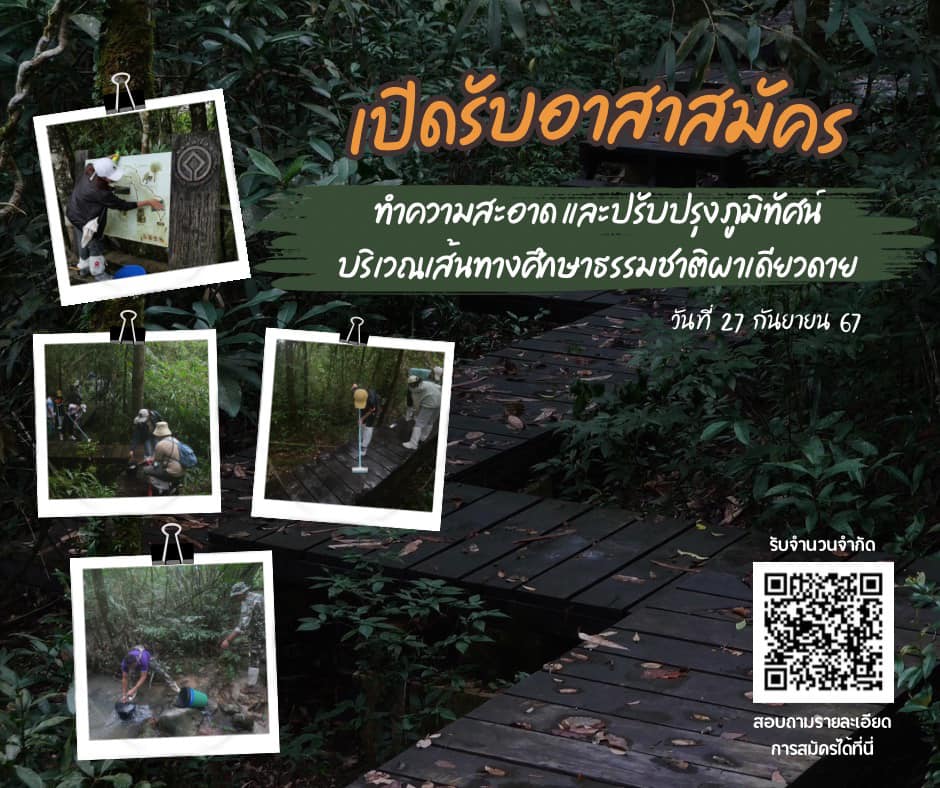 อุทยานแห่งชาติเขาใหญ่ เปิดรับสมัครจิตอาสา ร่วมกิจกรรมจิตอาสาเพื่อป่าเขาใหญ่ ประจำเดือนกันยายน 2567 ทำความสะอาด และปรับปรุงภูมิทัศน์ บริเวณเส้นทางศึกษาธรรมชาติผาเดียวดาย เปิดรับสมัครตั้งแต่วันนี้เป็นต้นไป ทำกิจกรรมในวันศุกร์ที่ 27 กันยายน 2567 ท่านใดสนใจสามารถสอบถามเพิ่มเติม ได้ที่ Qr-Code Facebook : อุทยานแห่งชาติเขาใหญ่ – Khao Yai National Park