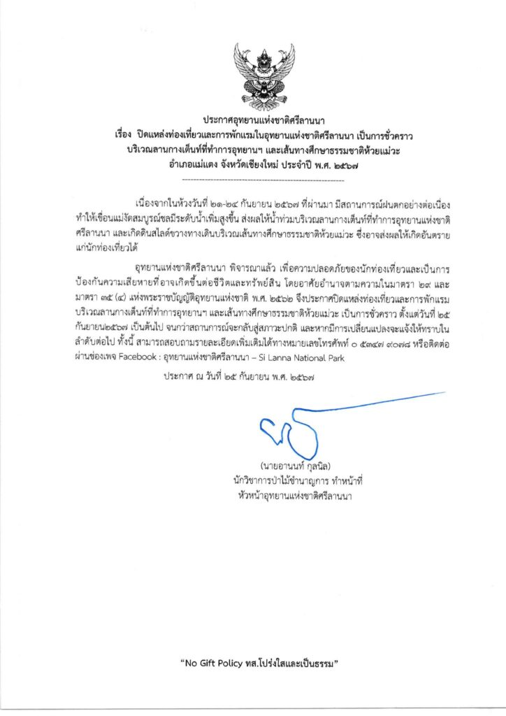 อุทยานแห่งชาติศรีลานนา ประกาศปิดลานกางเต็นท์ และ เส้นทางศึกษาธรรมชาติห้วยแม่วะ (ชั่วคราว) ข่าวสารกิจกรรม อุทยานแห่งชาติศรีลานนา ประกาศปิดลานกางเต็นท์ และ เส้นทางศึกษาธรรมชาติห้วยแม่วะ (ชั่วคราว) อุทยานแห่งชาติศรีลานนา ประกาศปิดลานกางเต็นท์ที่ทำการอุทยานฯ และ เส้นทางศึกษาธรรมชาติห้วยแม่วะ (ชั่วคราว) เนื่องด้วยสถานการณ์น้ำในเขื่อนแม่งัดสมบูรณ์ชล มีปริมาณน้ำที่มากจนใกล้จะล้นสปริงเวย์ ส่งผลกระทบต่อลานกางเต็นท์ของอุทยานแห่งชาติศรีลานนา รวมถึงเส้นทางศึกษาธรรมชาติห้วยแม่วะเกิดดินสไลด์ จึงขอประกาศปิด (ชั่วคราว) จนกว่าจะเข้าสู่ภาวะปกติ ที่มา : https://citly.me/p6KPw Post Views: 24 FacebookFacebookXTwitterLINELine