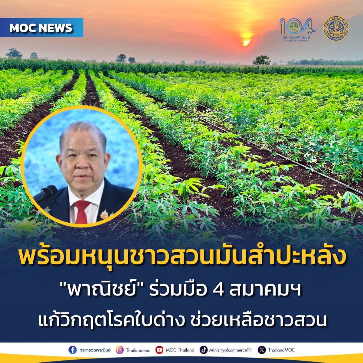 กระทรวงพาณิชย์ พร้อมสนับสนุน 4 สมาคมมันสำปะหลังแก้วิกฤตโรคใบด่าง ช่วยเหลือชาวสวนมัน