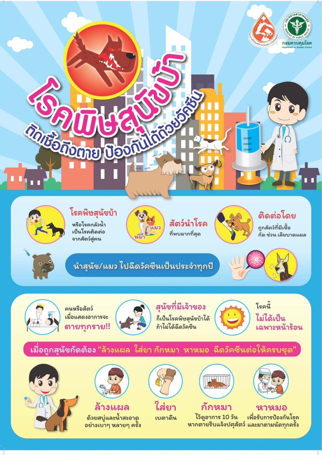 กรมควบคุมโรค ร่วมรณรงค์วันป้องกันโรคพิษสุนัขบ้าโลก 2567 ย้ำเตือนประชาชนตระหนักถึงอันตราย หากถูกสุนัขกัดให้รีบไปรับวัคซีน อีกช่องทางหนึ่งที่ทำให้ท่านสามารถติดตามข้อมูลข่าวสารได้ กดติดตามได้ที่ Facebook Fanpage กดดู รู้โรค by กรมควบคุมโรค