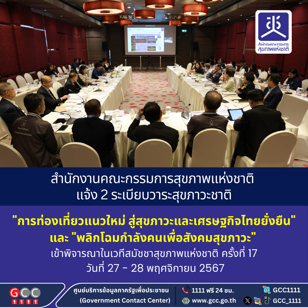 สช. แจ้ง 2 ระเบียบวาระสุขภาวะชาติ “ท่องเที่ยวแนวใหม่-พลิกโฉมกำลังคน” เข้าพิจารณาในสมัชชาสุขภาพฯ ปี 67