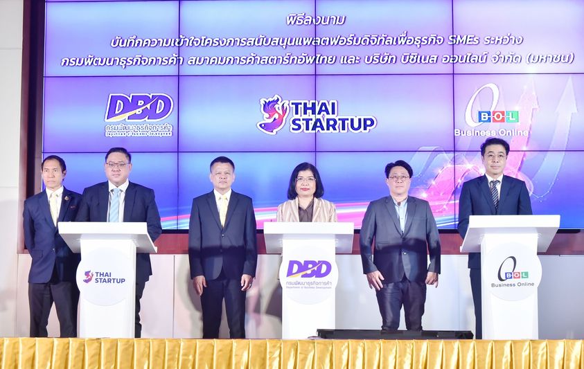 กรมพัฒนาธุรกิจการค้า ดึงหน่วยงานพันธมิตรลงนามบันทึกข้อตกลงความร่วมมือ (MOU) รวม 2 ฉบับ โดยฉบับแรกเป็นการพัฒนาแพลตฟอร์ม DBD SMEs 360 ที่รวบรวมซอฟต์แวร์และเครื่องมือในการทำธุรกิจไว้ในที่เดียวร่วมกับสมาคมการค้าสตาร์ทอัพไทย และ BOL ส่วนฉบับที่ 2 เป็นการเชื่อมโยงระบบเทคโนโลยีสารสนเทศกับไปรษณีย์ไทย เพื่อสร้างโอกาสทางการค้าและการตลาดให้แก่ผู้ประกอบการ โดยเป้าหมายสำคัญของ MOU ทั้ง 2 ฉบับเพื่ออำนวยความสะดวก เพิ่มศักยภาพ และสร้างโอกาสทางธุรกิจให้ SMEs ไทย