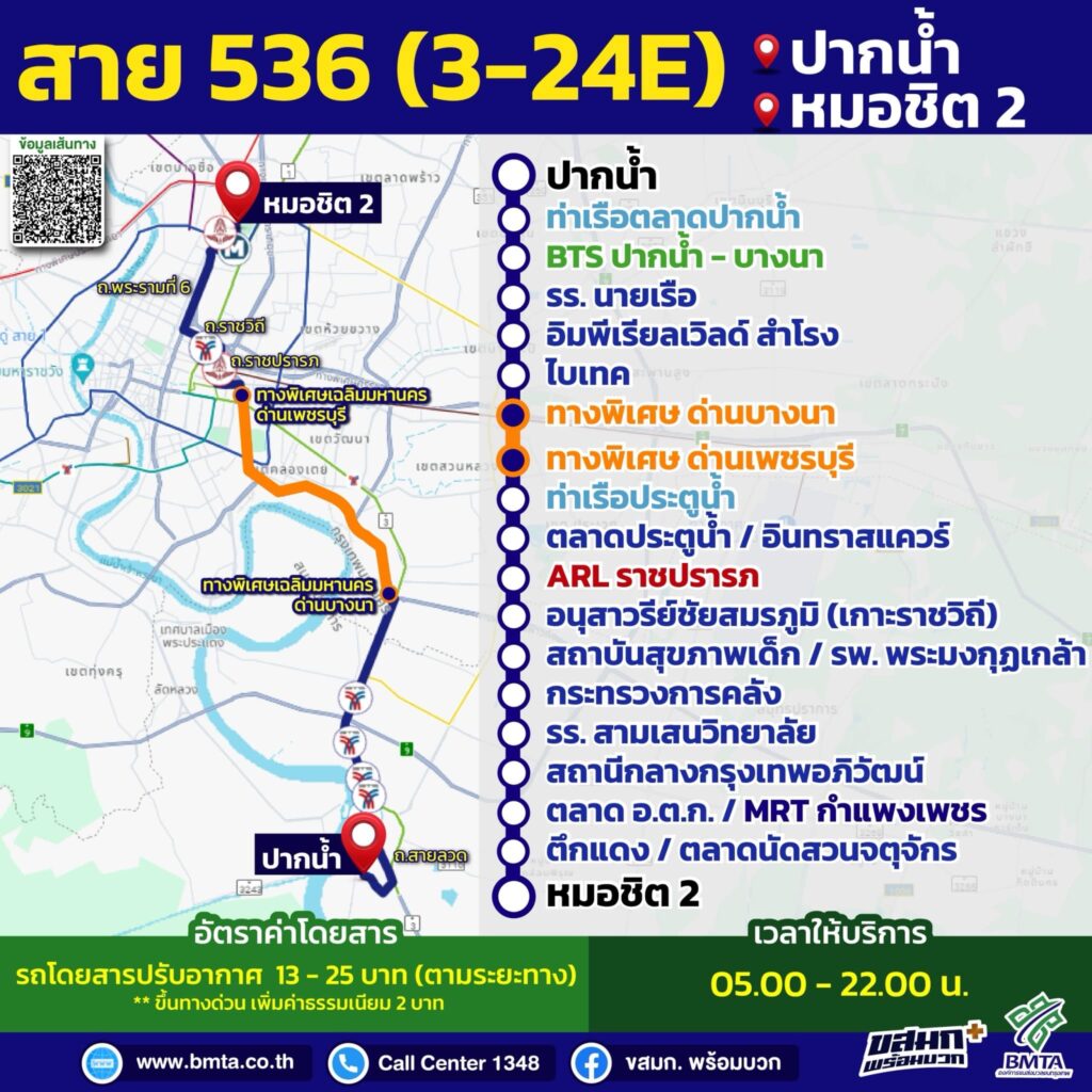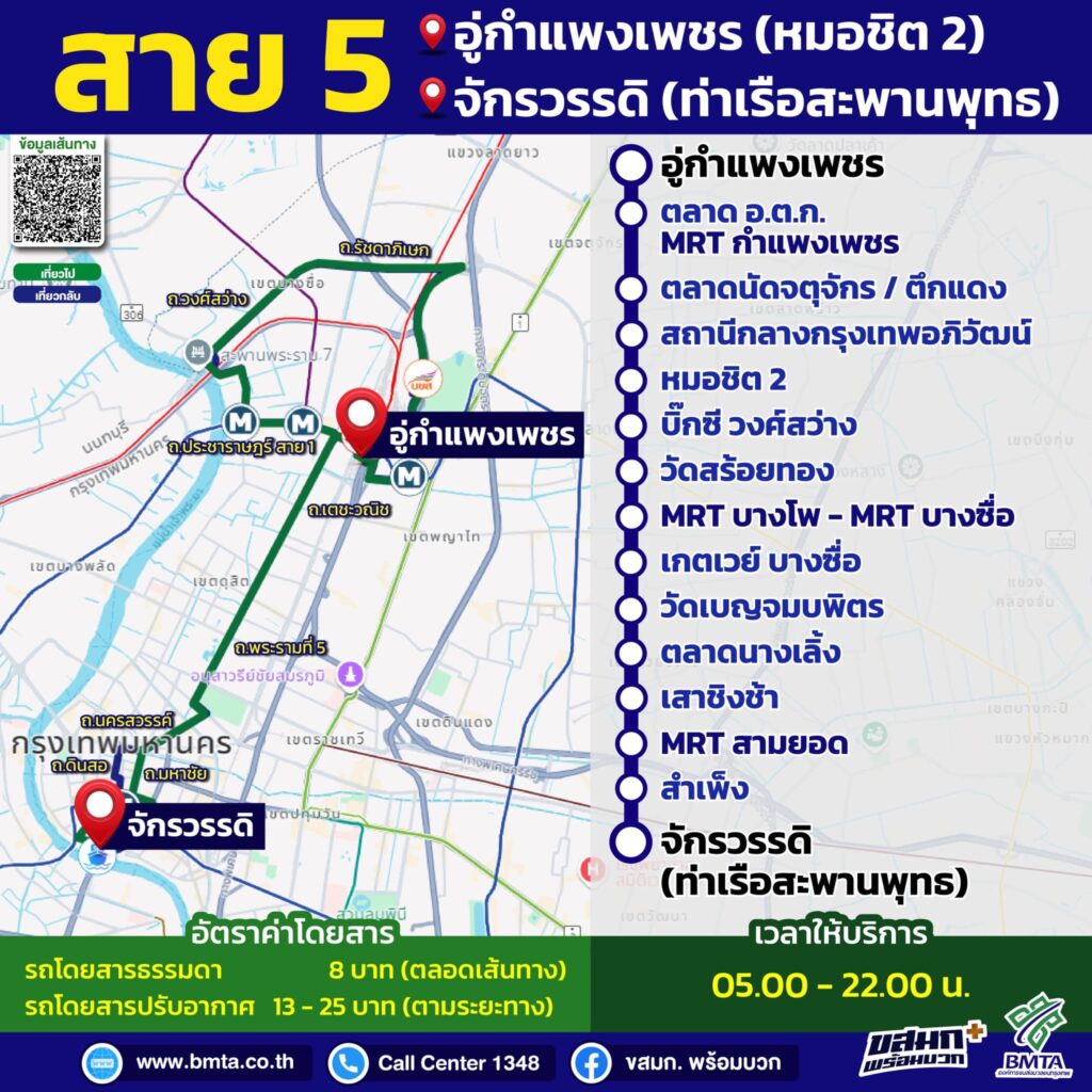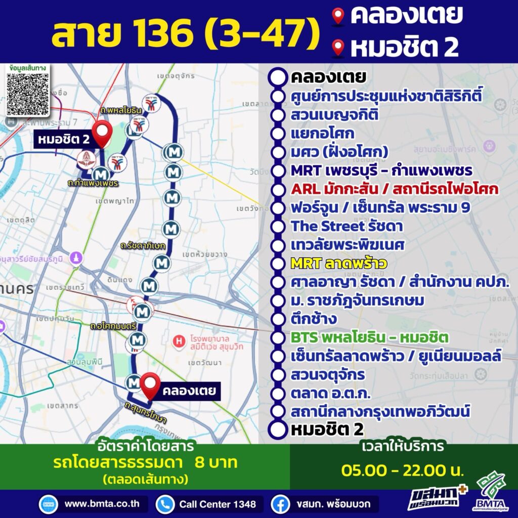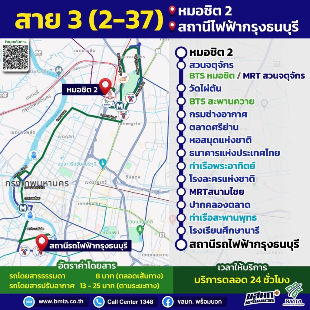 นายกิตติกานต์ จอมดวง จารุวรพลกุล ผู้อำนวยการองค์การขนส่งมวลชนกรุงเทพ เปิดเผยว่า ขสมก. ร่วมมือกับบริษัท ขนส่ง จำกัด (บขส.) ในการเชื่อมต่อการเดินทาง เพื่ออำนวยความสะดวกให้กับประชาชน ด้วยการนำรถโดยสารประจำทางของ ขสมก. ที่วิ่งผ่านสถานีขนส่งผู้โดยสารกรุงเทพฯ (จตุจักร) หรือ หมอชิต 2 จำนวน 15 เส้นทาง เข้ามาจอดรับประชาชน บริเวณด้านหน้าเสาธงอาคารสถานีขนส่ง ผู้โดยสารกรุงเทพฯ (จตุจักร) และจอดส่งบริเวณป้ายหยุดรถโดยสารประจำทาง สถานีขนส่งผู้โดยสารกรุงเทพ (จตุจักร) เพื่ออำนวยความสะดวกให้กับประชาชน สามารถใช้บริการรถโดยสารของ บขส. ได้อย่างไร้รอยต่อ ตั้งแต่วันที่ 1 ตุลาคม 2567 เป็นต้นไป