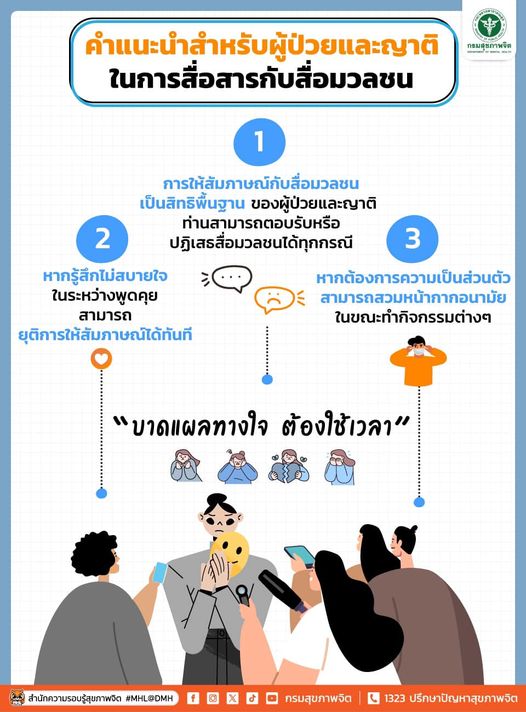 กรมสุขภาพจิต ให้คำแนะนำสำหรับผู้ป่วยและญาติในการสื่อสารกับสื่อมวลชน