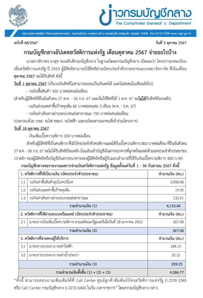 กรมบัญชีกลาง อัปเดตสวัสดิการแห่งรัฐ เดือนตุลาคม 2567