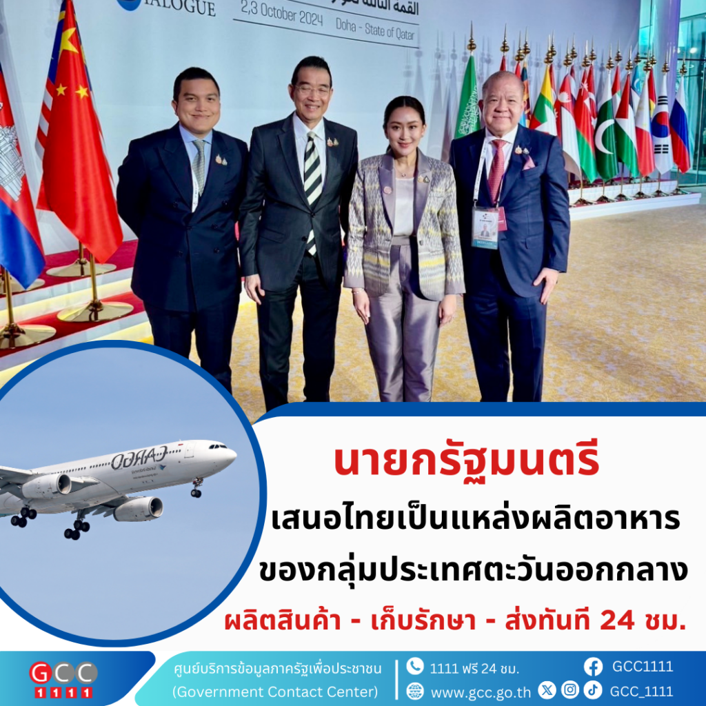 นายกรัฐมนตรี เสนอไทยเป็นแหล่งผลิตอาหารของกลุ่มประเทศตะวันออกกลาง เสริมความมั่นคงทางอาหารโลก (Food Security) พร้อม ผลิตสินค้า – เก็บรักษา – ส่งทันที 24 ชม.
