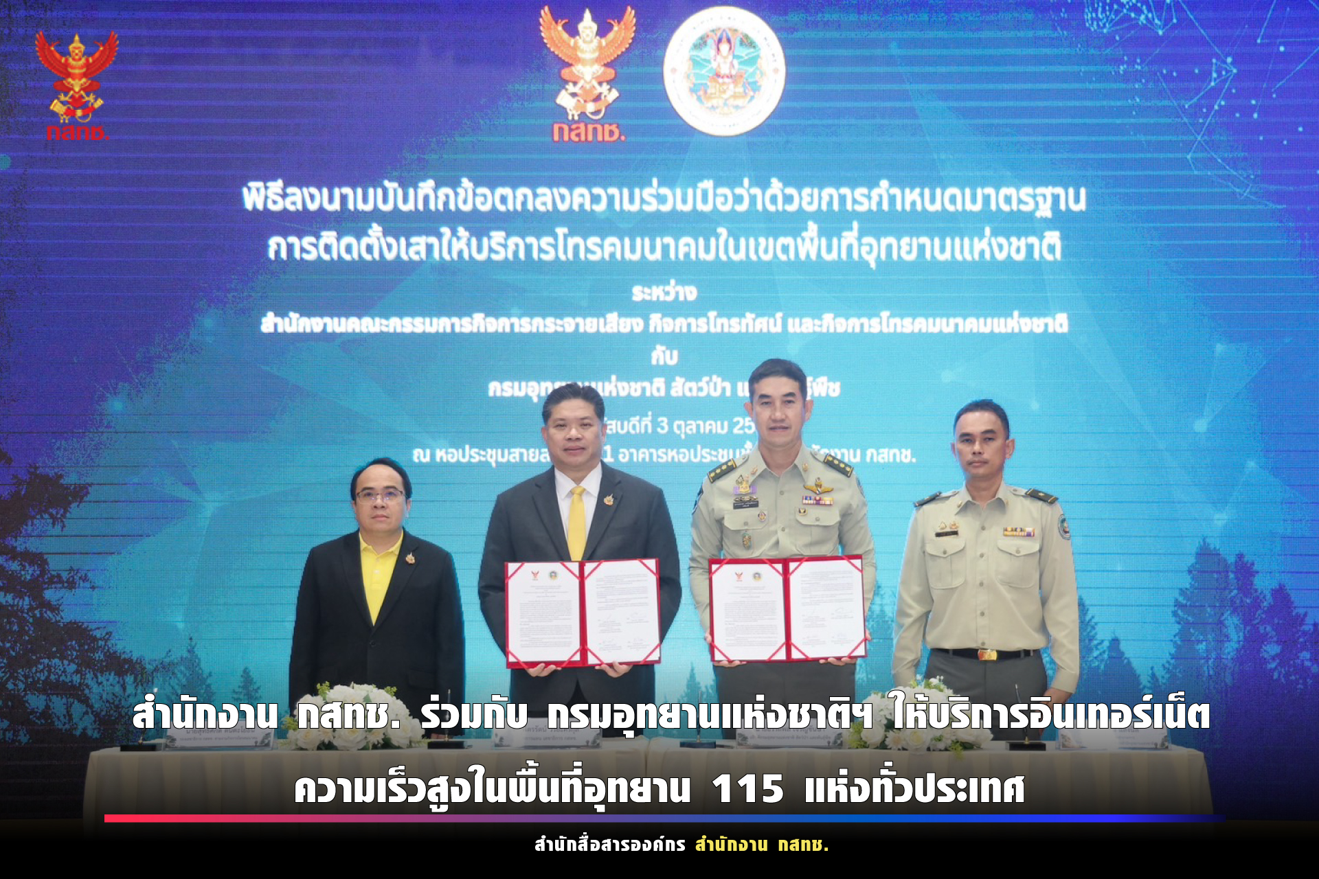 สำนักงาน กสทช. ร่วมกับ กรมอุทยานแห่งชาติฯ ให้บริการอินเทอร์เน็ตความเร็วสูงในพื้นที่อุทยาน 115 แห่งทั่วประเทศ