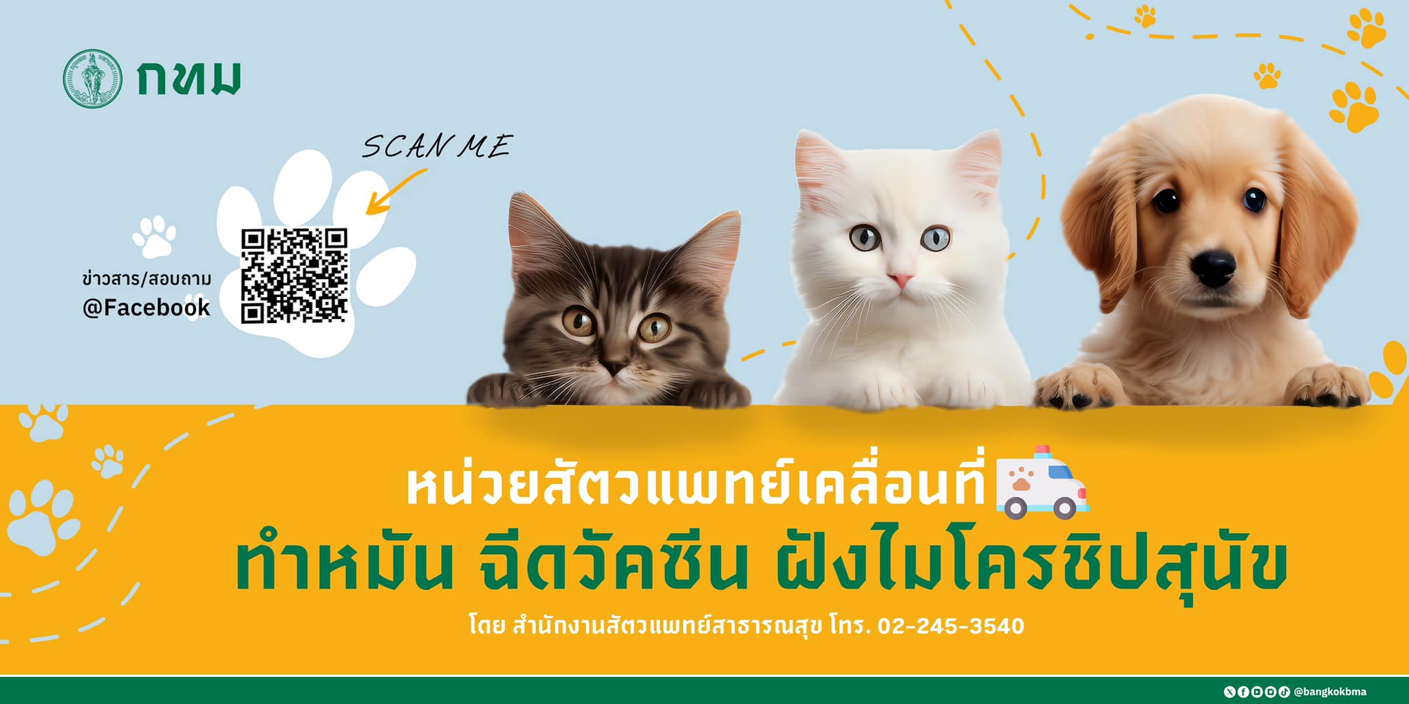 - สำนักงานสัตวแพทย์สาธารณสุข สำนักอนามัย 02 245 3540