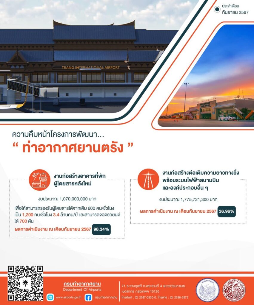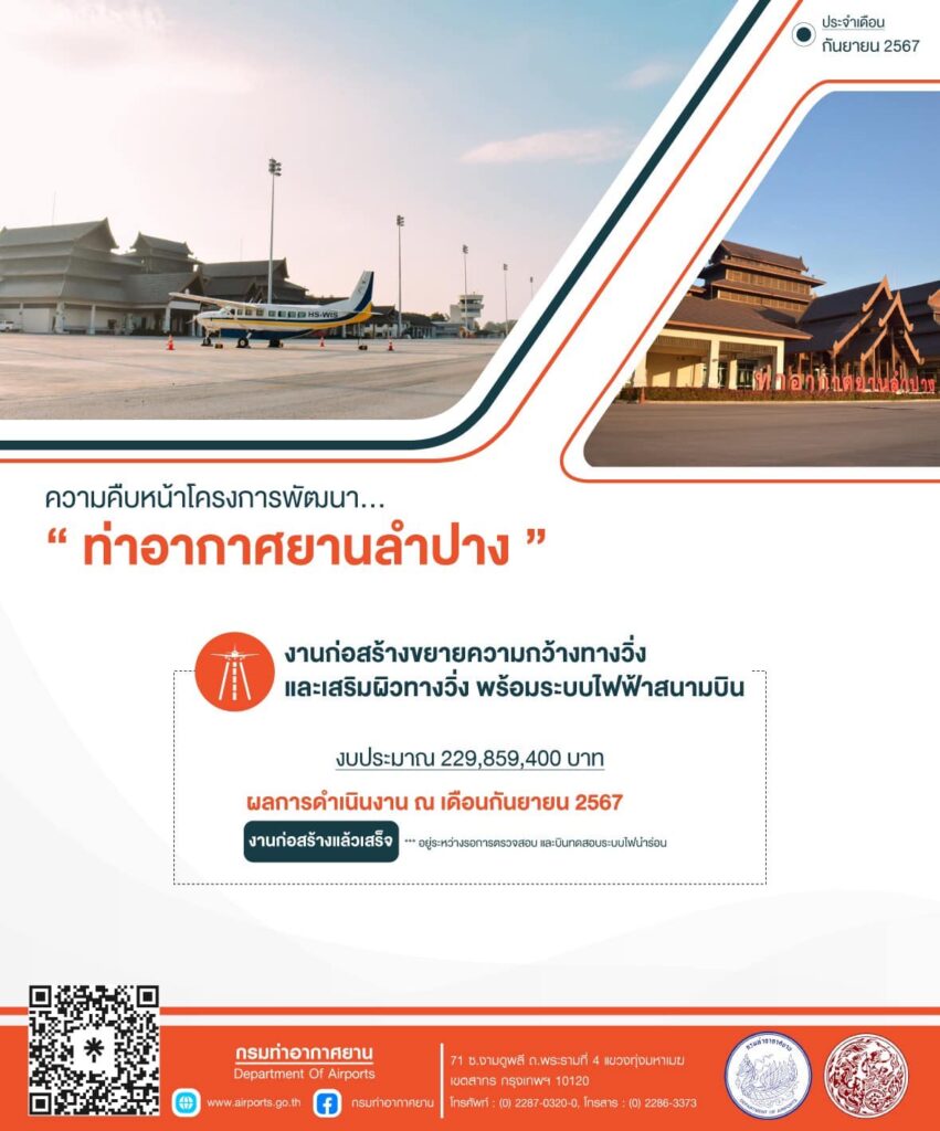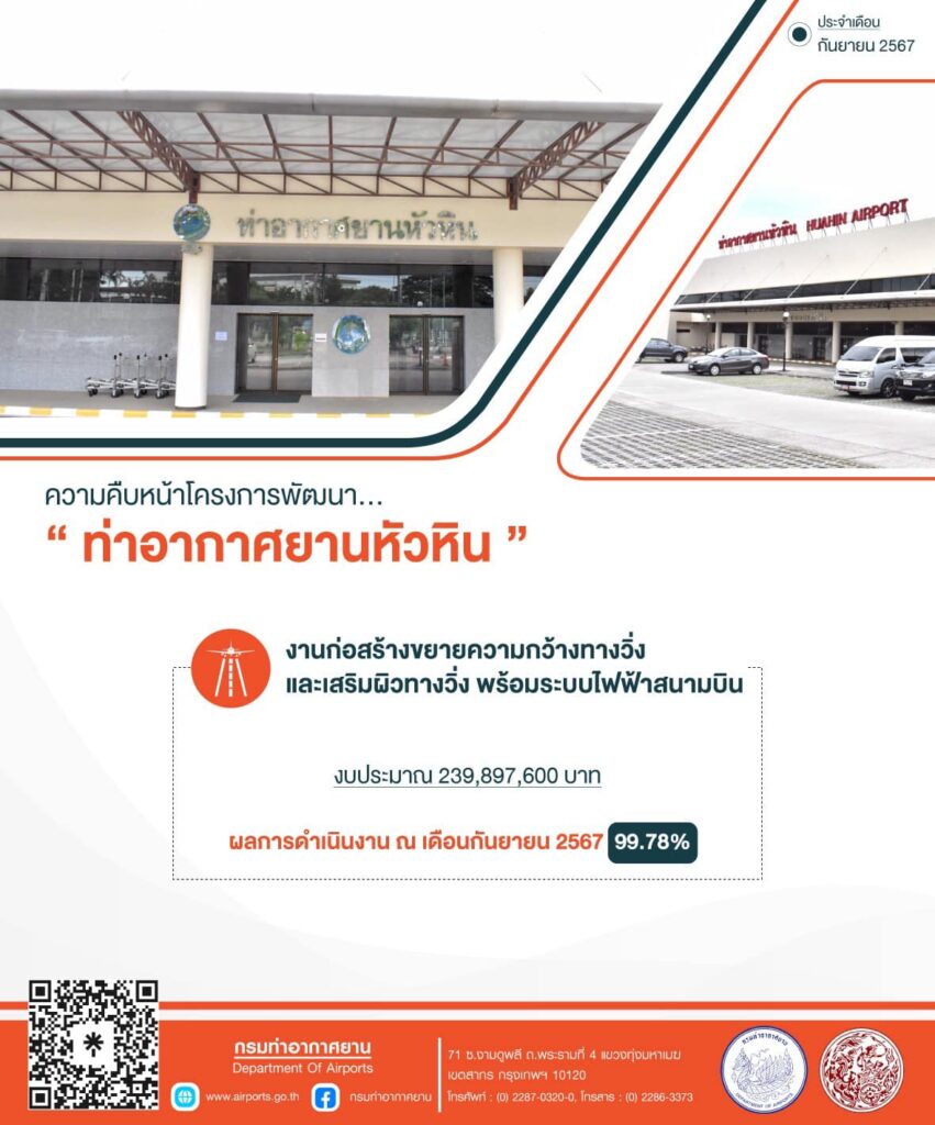 กรมท่าอากาศยาน แจ้งความคืบหน้าโครงการก่อสร้างตามแผนพัฒนาของกรมท่าอากาศยาน ประจำเดือนกันยายน ข่าวสารกิจกรรม กรมท่าอากาศยาน แจ้งความคืบหน้าโครงการก่อสร้างตามแผนพัฒนาของกรมท่าอากาศยาน ประจำเดือนกันยายน กรมท่าอากาศยาน แจ้งความคืบหน้าโครงการก่อสร้างตามแผนพัฒนาของกรมท่าอากาศยาน ประจำเดือนกันยายน (ข้อมูล ณ วันที่ 8 ตุลาคม 2567) โดยได้ดำเนินการพัฒนาปรับปรุงและเพิ่มประสิทธิภาพท่าอากาศยาน ให้สามารถรองรับและพร้อมให้บริการประชาชนอย่างดีที่สุด ที่มา : https://citly.me/6r8LY Post Views: 6 FacebookFacebookXTwitterLINELine