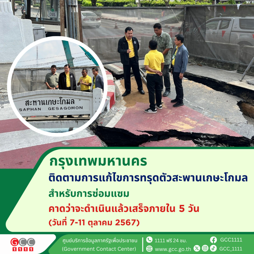 กรุงเทพมหานคร ติดตามการแก้ไขการทรุดตัวสะพานเกษะโกมล