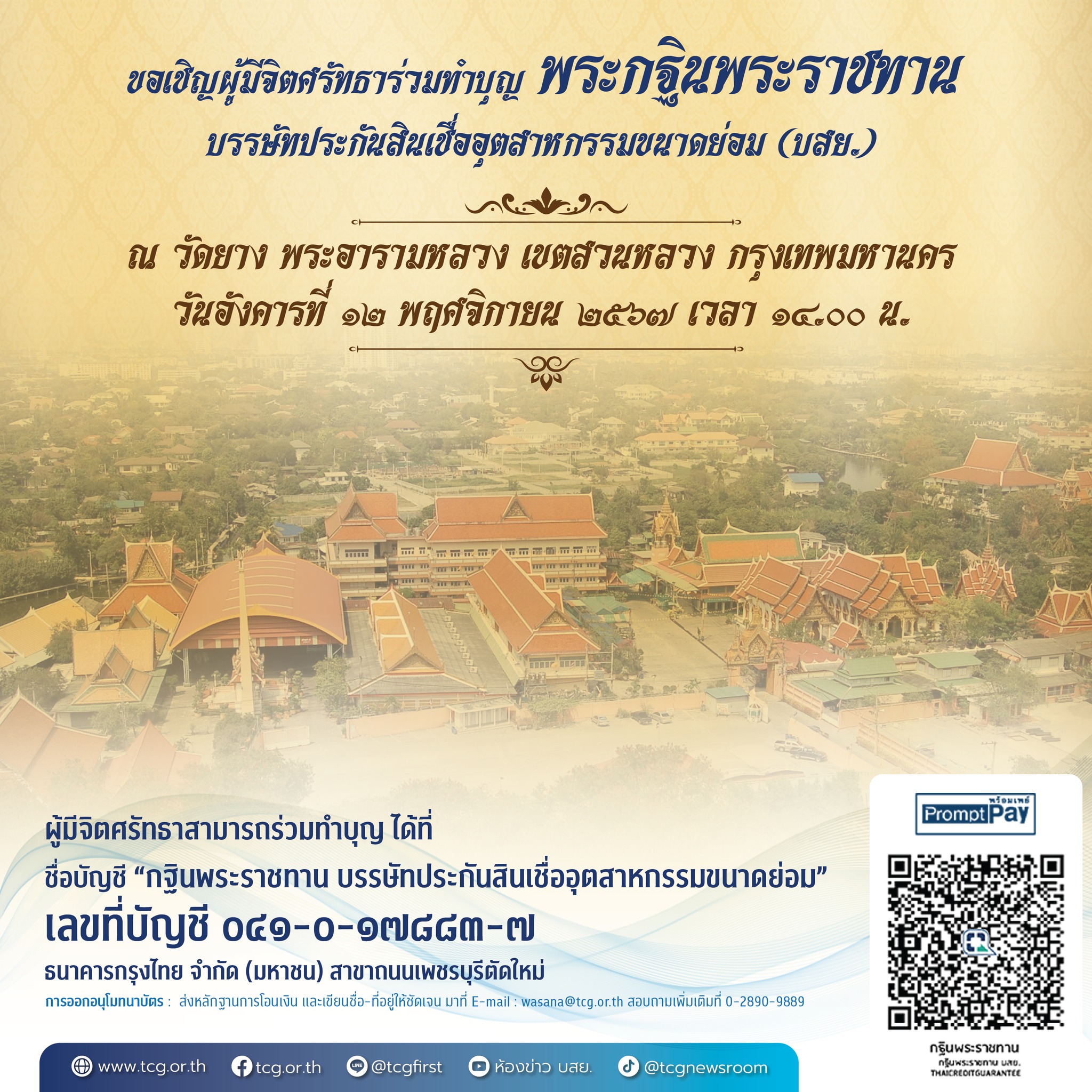 บสย. ขอเชิญร่วมบุญใหญ่ กฐินพระราชทาน ประจำปี 2567