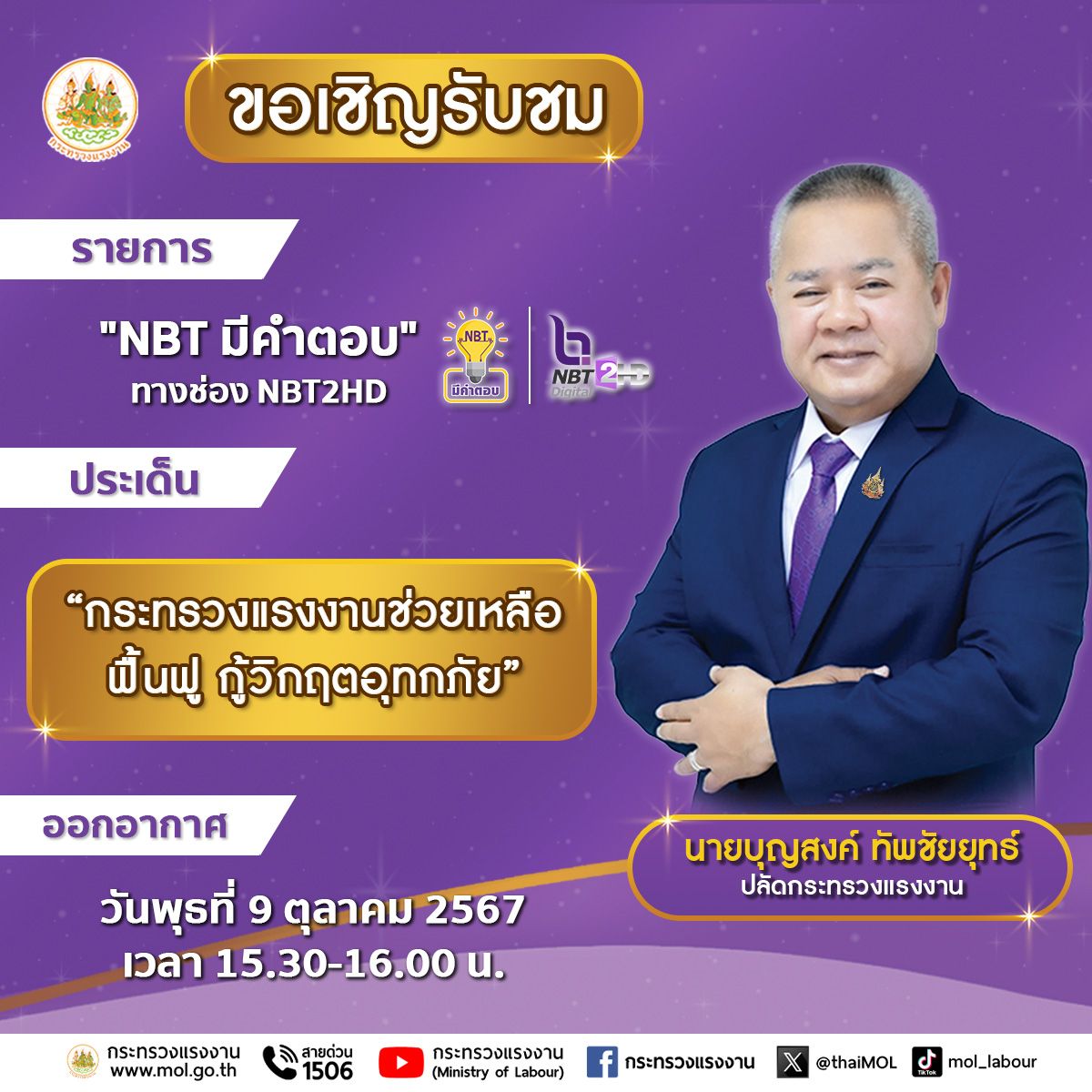 กระทรวงแรงงาน จัดรายการ NBT มีคำตอบ ในวันที่ 9 ตุลาคม 2567
