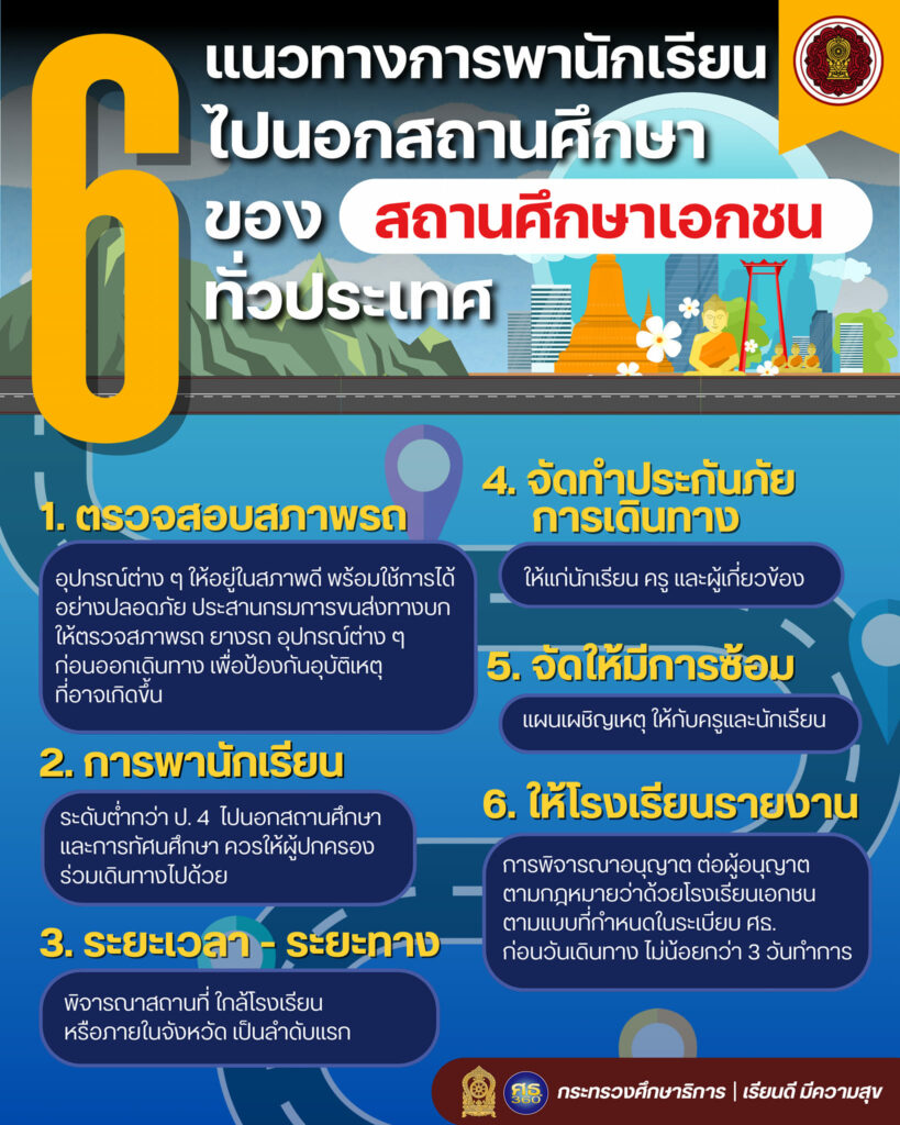 สำนักงานคณะกรรมการส่งเสริมการศึกษาเอกชน ประกาศ “6 แนวทางการพานักเรียนไปนอกสถานศึกษา” ของสถานศึกษาเอกชนทั่วประเทศ