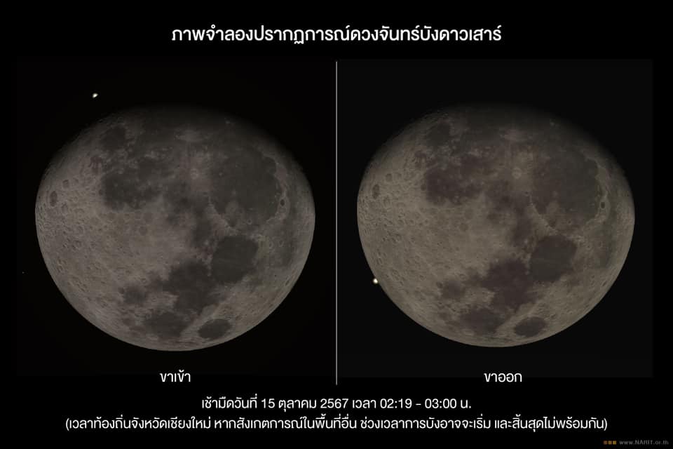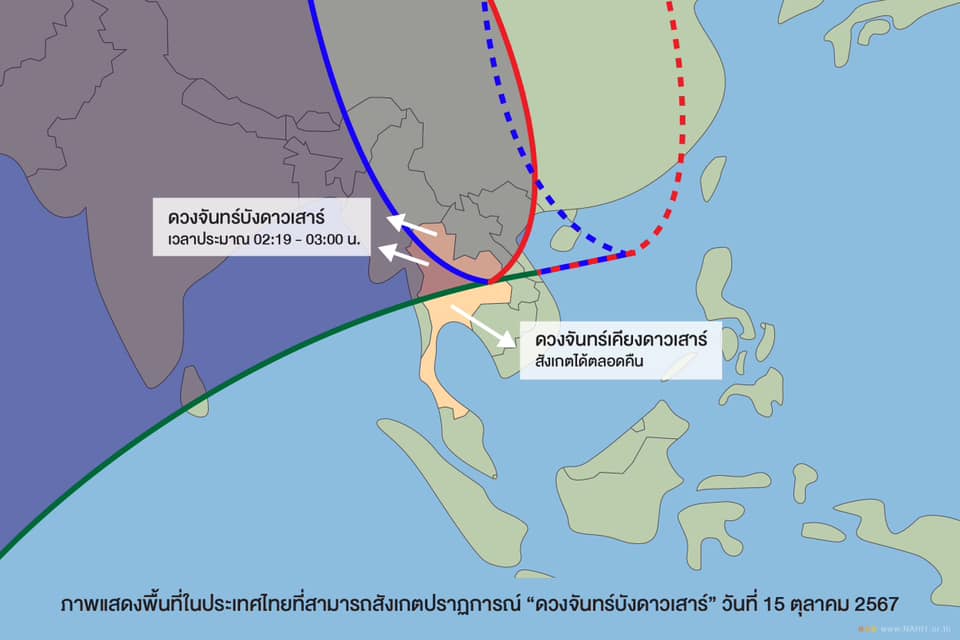 - จะเกิดช่วงก่อนรุ่งเช้า วันที่ 15 ตุลาคม 2567 เวลาประมาณ 02.19 – 03.00 น.