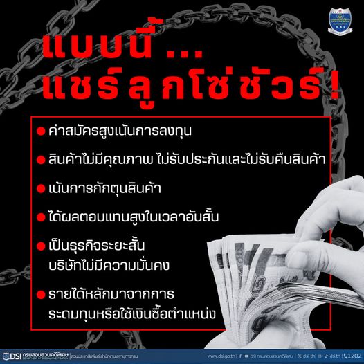 กรมสอบสวนคดีพิเศษ เปิดเผย 6 แบบนี้แชร์ลูกโซ่ชัวร์