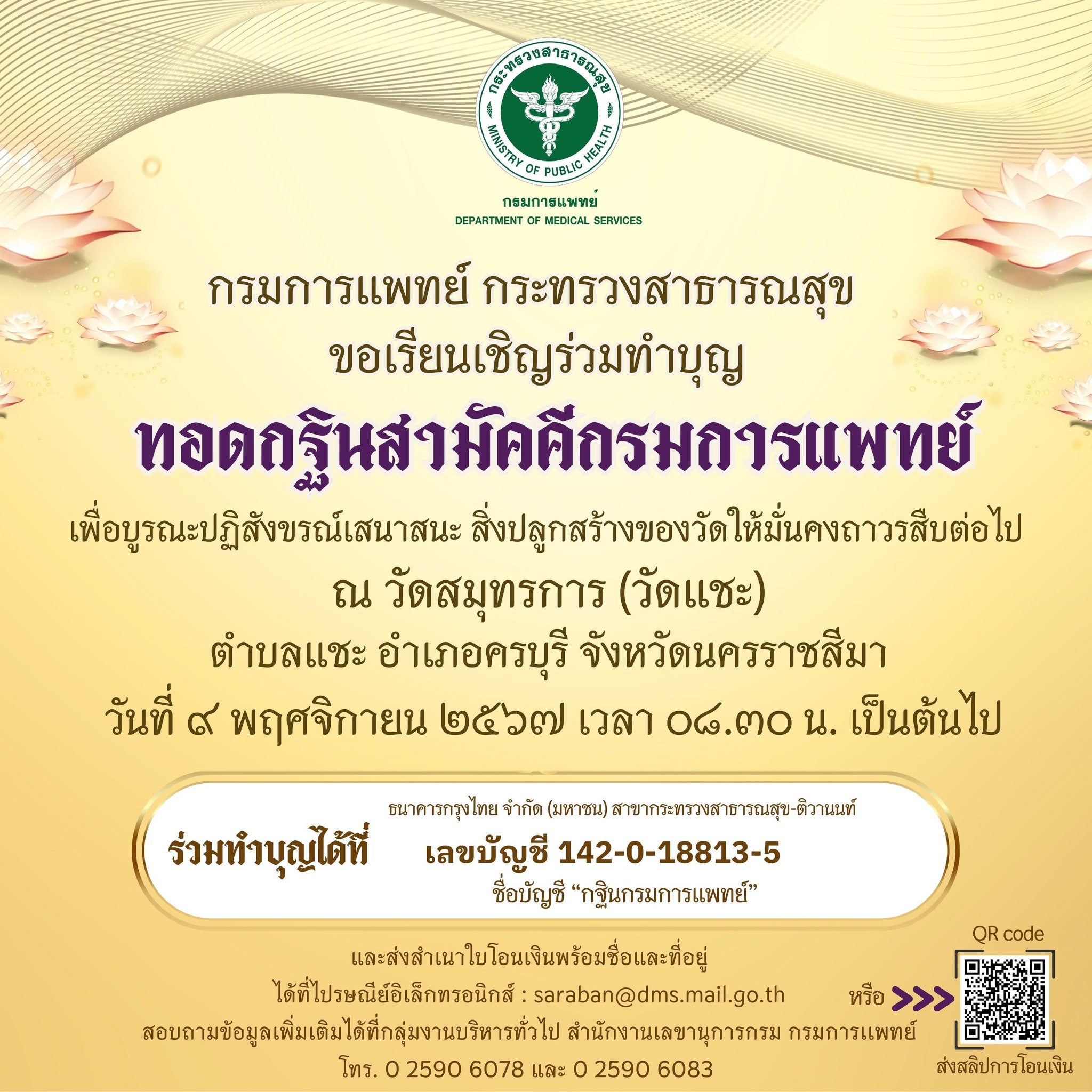 กรมการแพทย์ ขอเรียนเชิญร่วมทําบุญ ทอดกฐินสามัคคีกรมการแพทย์