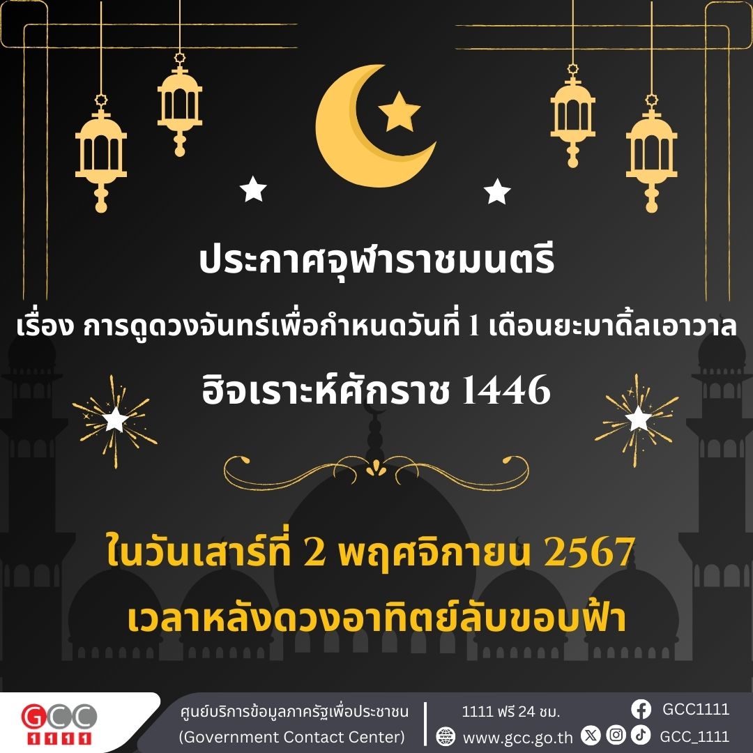 เพื่อให้การกำหนดวันที่ 1 เดือนยะมาดิ้ลเอาวาล ฮิจเราะห์ศักราช 1446 เป็นไปด้วยความเรียบร้อย จึงประกาศให้พี่น้องชาวไทยมุสลิมทั่วประเทศดูดวงจันทร์ ในวันเสาร์ที่ 2 พฤศจิกายน พ.ศ. 2567 เวลาหลังดวงอาทิตย์ลับขอบฟ้า