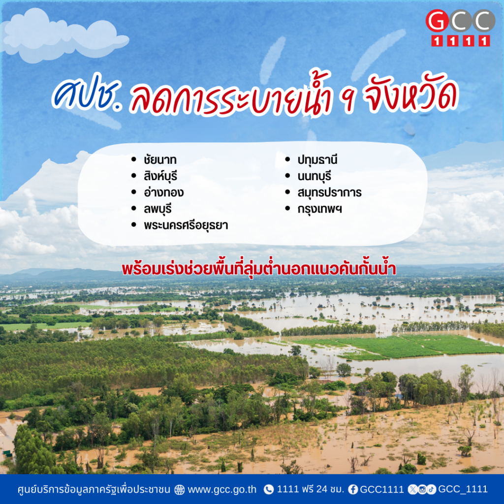 ศปช. ลดการระบายน้ำ 9 จังหวัด พร้อมเร่งช่วยพื้นที่ลุ่มต่ำนอกแนวคันกั้นน้ำ