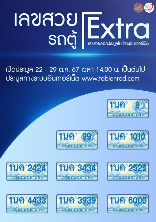กปถ. เปิดประมูลเลขสวย Extra รถตู้ ผ่านทางระบบอินเทอร์เน็ต ในวันที่ 22 ตุลาคม 2567