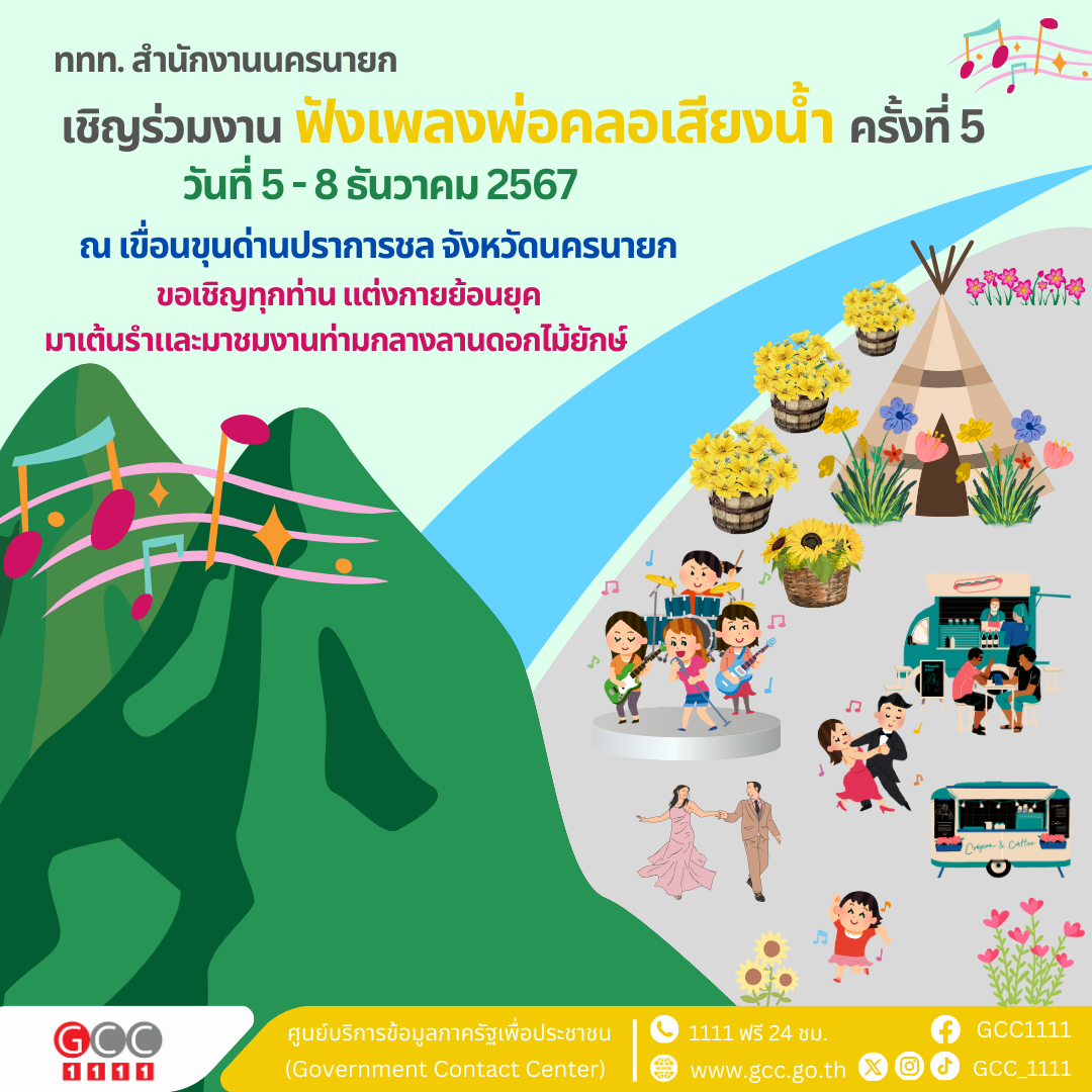 ททท. สำนักงานนครนายก เชิญร่วมงาน ฟังเพลงพ่อคลอเสียงน้ำ ครั้งที่ 5 วันที่ 5 – 8 ธ.ค 2567