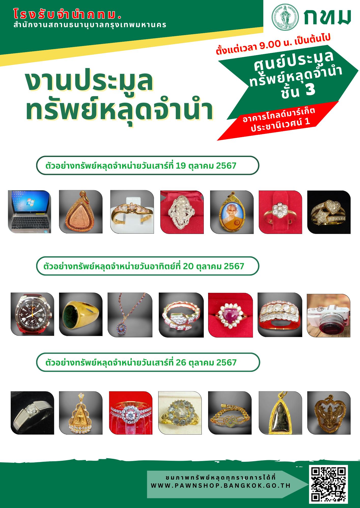 สำนักงานสถานธนานุบาลกรุงเทพมหานคร เปิดประมูลทรัพย์หลุดจำนำ เดือน ต.ค. 67