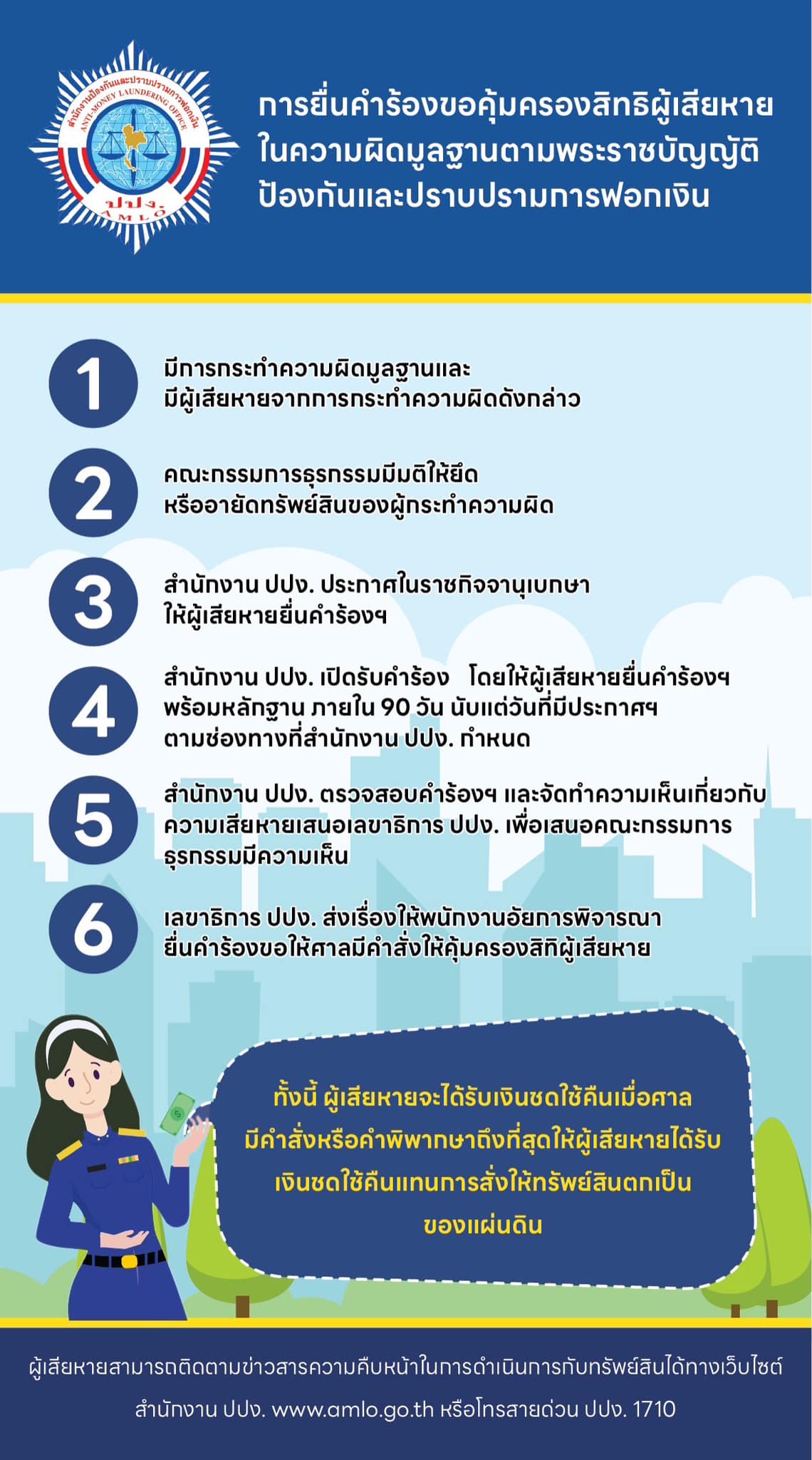 • สำนักงานป้องกันและปราบปรามการฟอกเงิน แนะนำการยื่นคําร้องขอคุ้มครองสิทธิผู้เสียหายในความผิดมูลฐาน