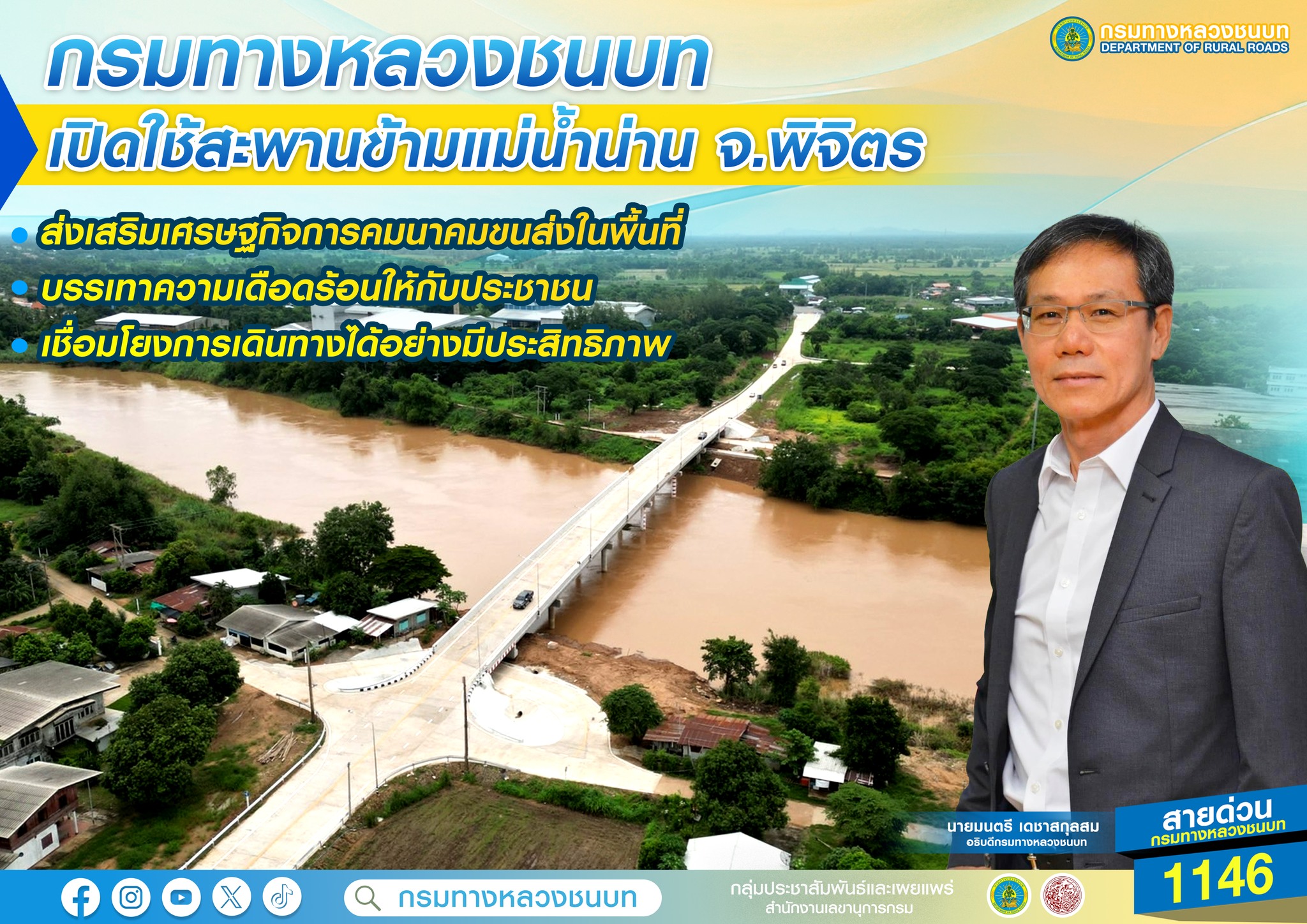 กรมทางหลวงชนบท เปิดใช้สะพานข้ามแม่น้ำน่าน (สะพานน่านนที) จ.พิจิตร ส่งเสริมเศรษฐกิจการคมนาคมขนส่งในพื้นที่