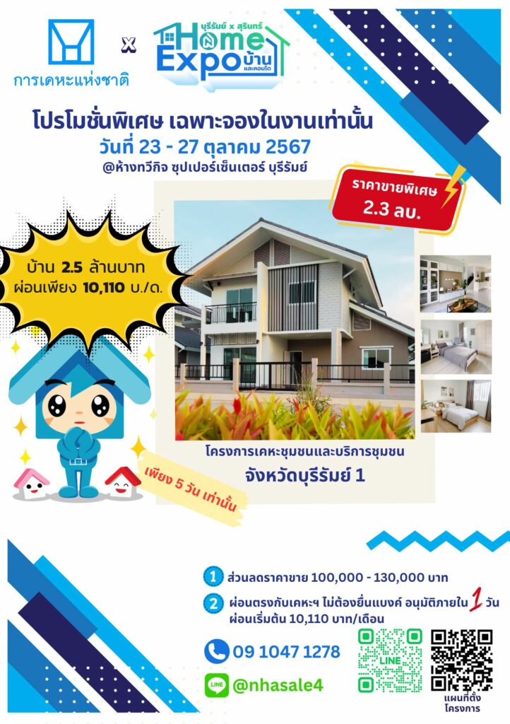 - การเคหะแห่งชาติ จัดโปรโมชั่นพิเศษ เพียง 5 วันเท่านั้น ในงานมหกรรมบ้านและคอนโด 2567 บุรีรัมย์xสุรินทร์น่าอยู่