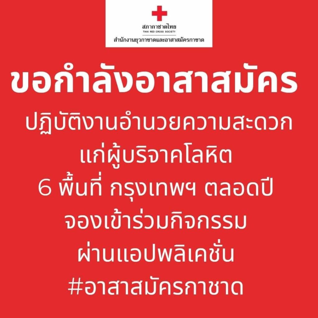 สภากาชาดไทย เชิญชวนอาสาสมัครร่วมช่วยอำนวยความสะดวกให้ผู้บริจาคโลหิต ในกรุงเทพมหานคร